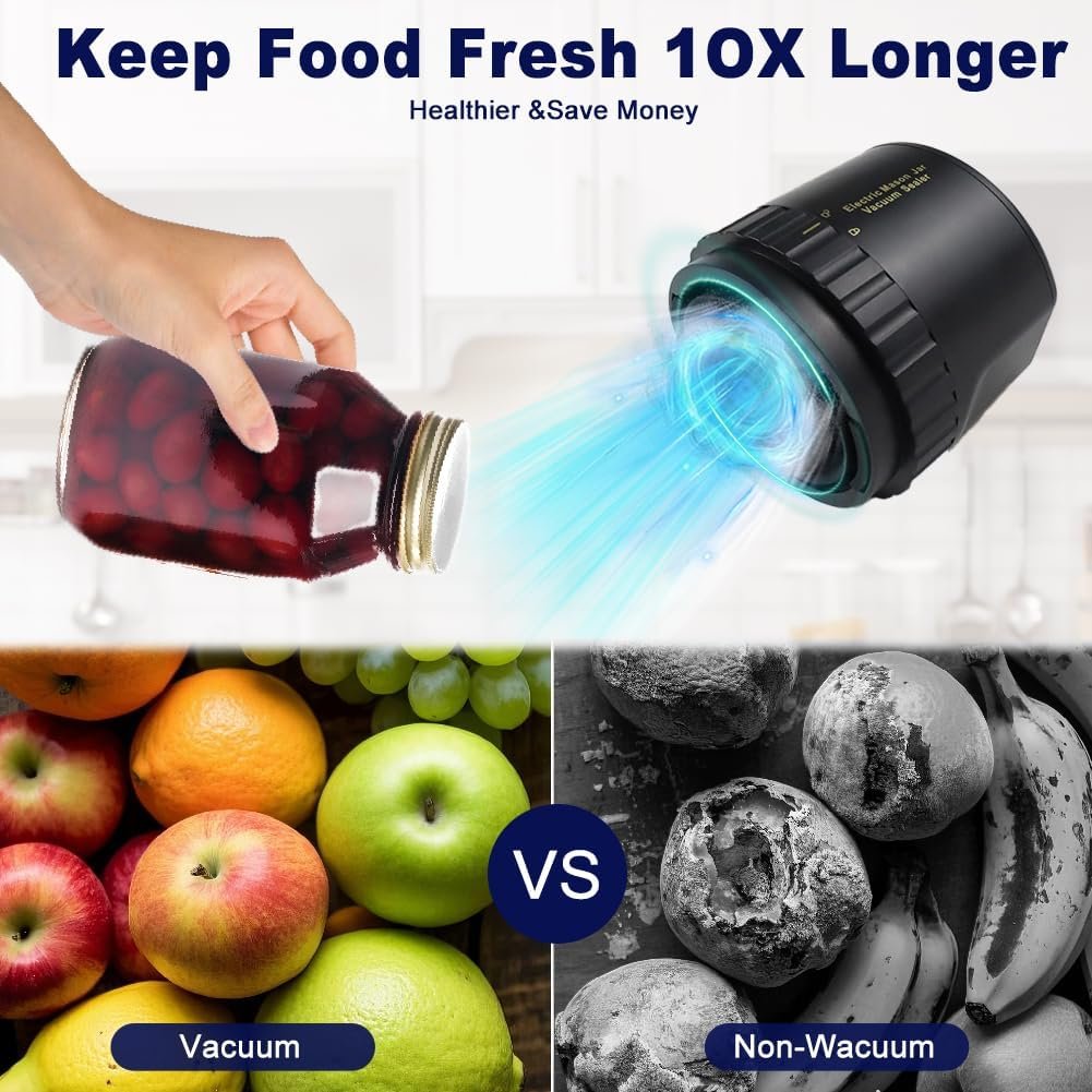Long-term Food Fresh Saver:Use in confidence, Abnaok electric mason jar vacuum sealer is made of ABS plastic and food-grade silicone, you can use to extract the air from your mason jars. Our mason jar electric vacuum sealer can extend freshness, and reduce food waste.