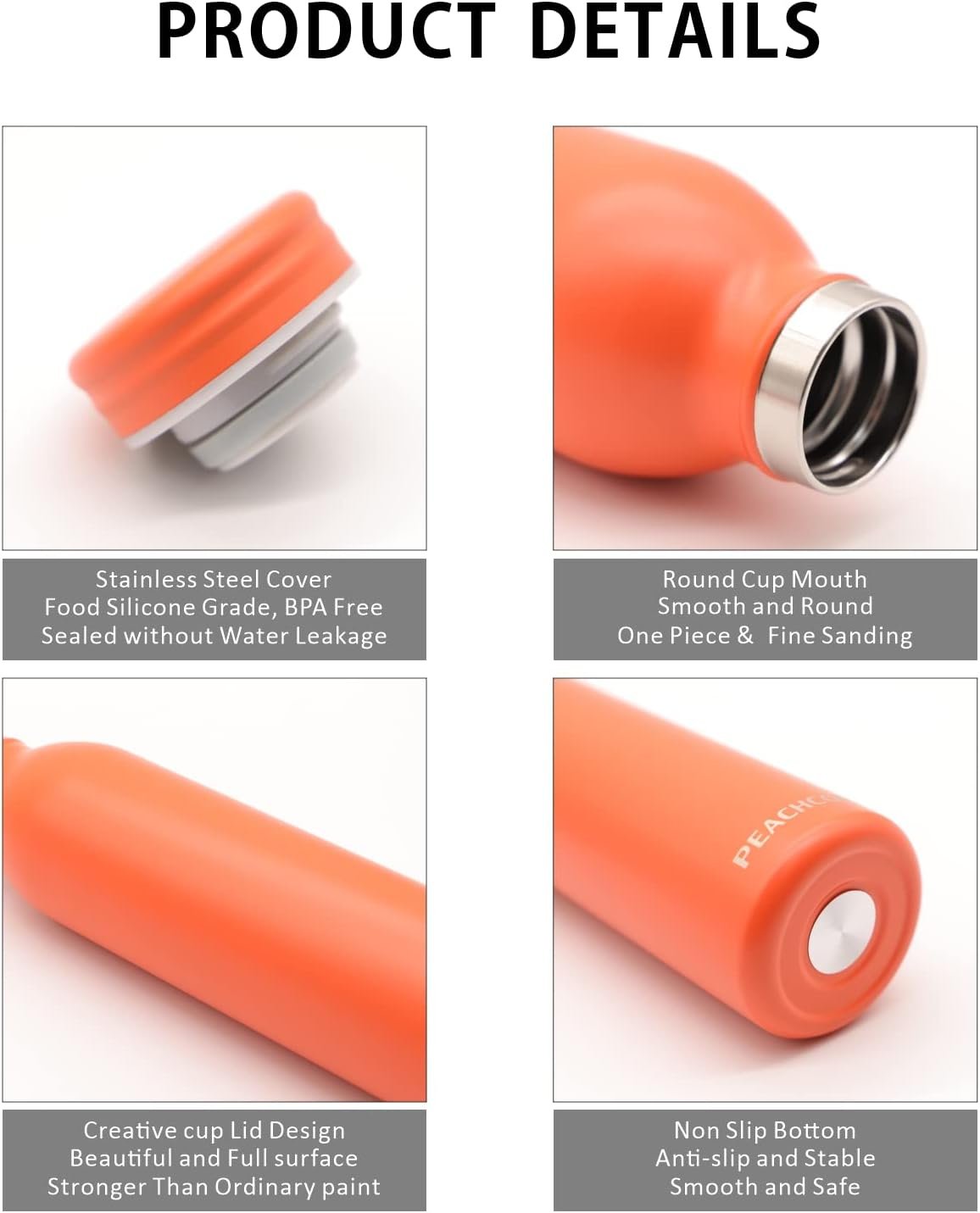 20oz Stainless Steel Water Bottle – Double Walled Vacuum Insulated – Keeps Hot for 12 & Cold for 24 Hours – BPA-Free – Leak Proof Reusable – Thermo Flask for Sports, Outdoor (Orange)