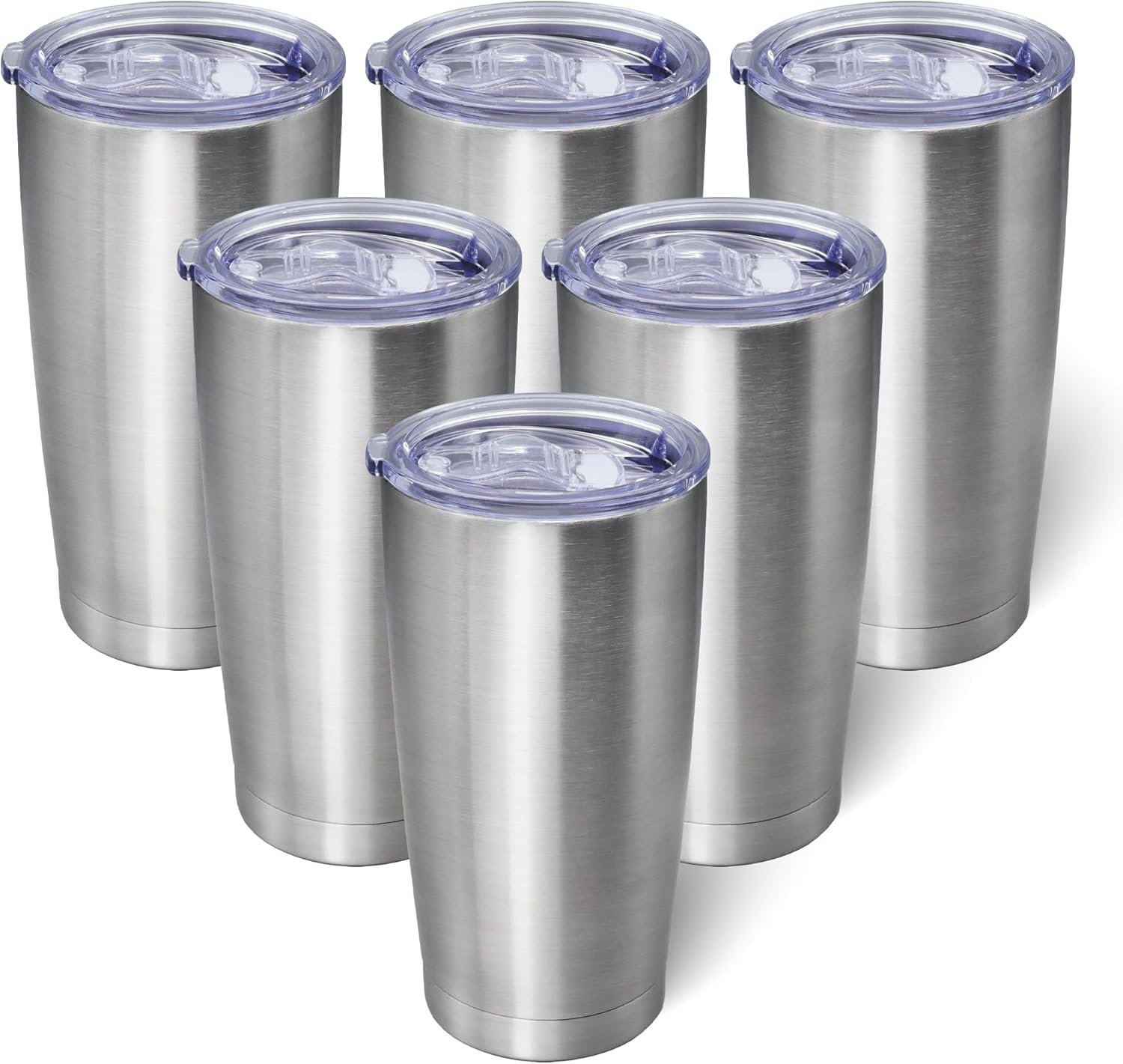20oz Tumbler Bulk Stainless Steel Tumblers with Lid Vacuum Insulated Double Wall Travel Coffee Mug Powder Coated Tumbler Cup for Hot and Cold Drinks(Stainless Steel, 6 pack)