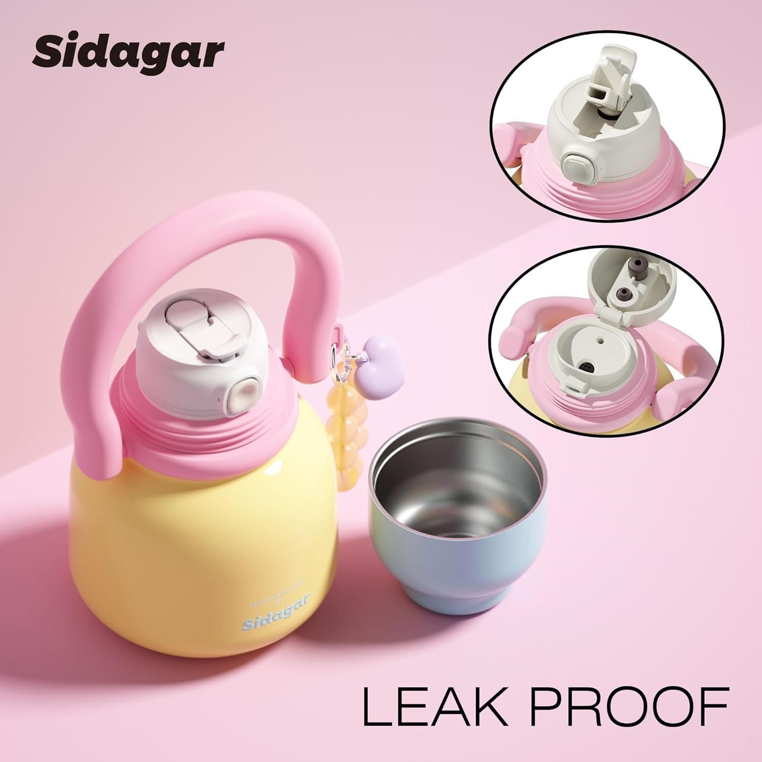 Cute Style & Ideal Gift: Adorned with a Cream Yellow finish and heart bracelet charm, this cute 22 oz bottle is a stylish accessory and an ideal gift choice for women’s daily use.