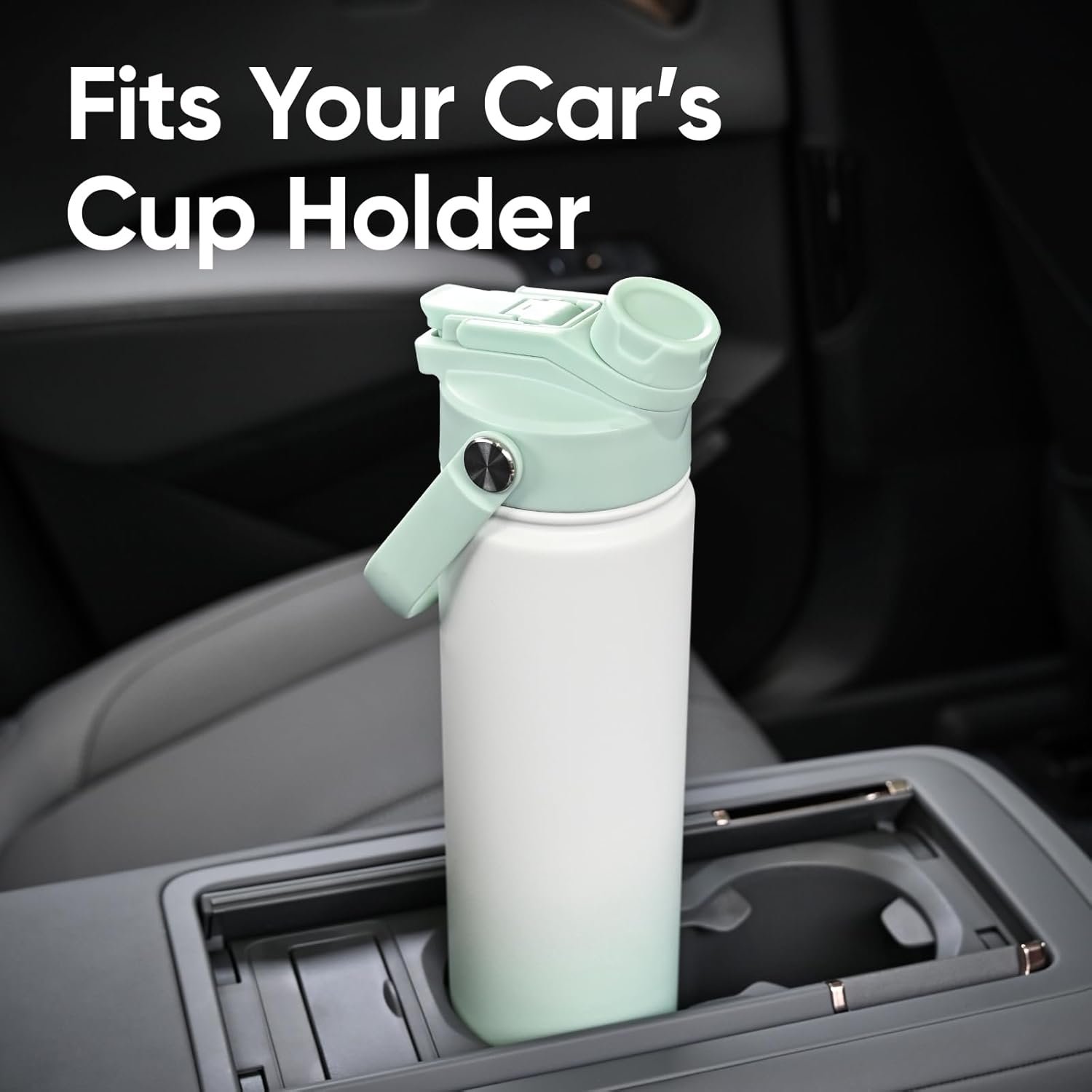 24 oz Insulated Water Bottle, 2-in-1 Lid, Straw & Spout with Protected, Leak Proof, Keep Cold 24H, Cup Holder Fit, Stainless Steel, Metal, Reusable, for Travel, Gym and School, 2 Lids, Iced Mint