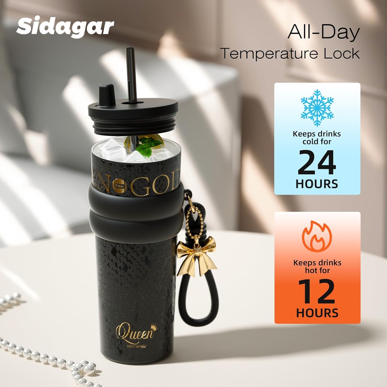 SDGA 24 oz Insulated Tumbler, Large Capacity Women’s Straw Cup, Gift