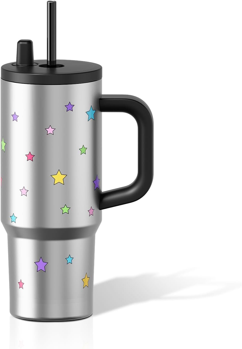 24 oz Tumbler with Lid and Straw, Stainless Steel Travel Coffee Mug with Handle, Resuable Insulated Water Bottle, Portable Ice Coffee Cup for Women, Star