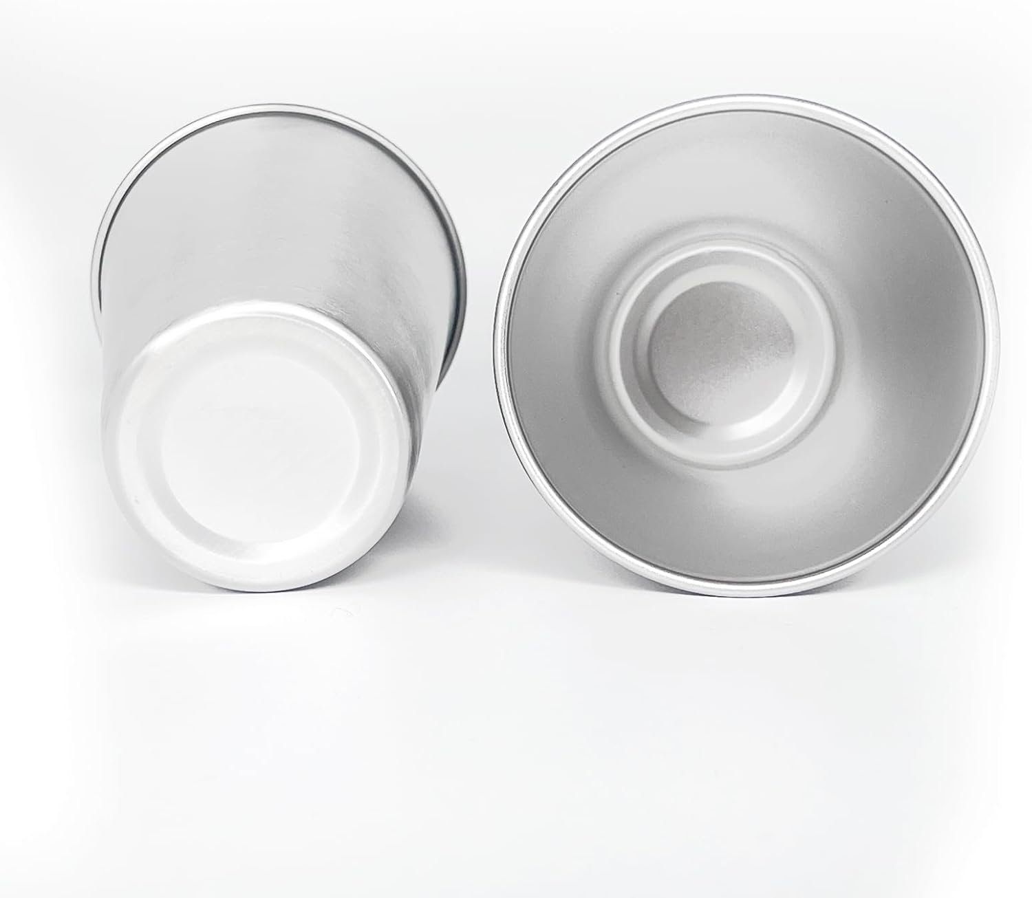 Material: These cups made of food grade 304 stainless steel. No BPA and inodorous, rustless and durable, long service life. Inside and outside of these cups are polished, can be used repeatedly, is a perfect substitute for paper cups and glasses.