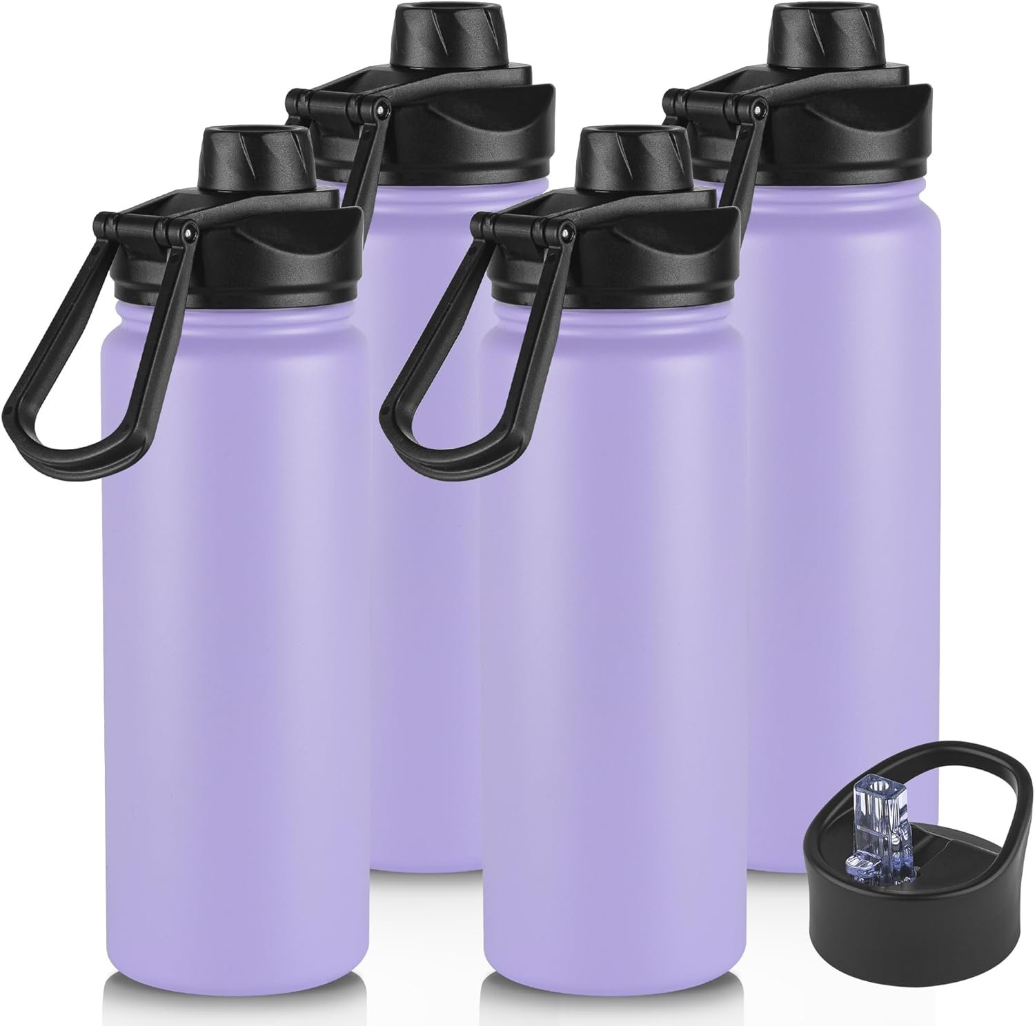24oz Insulated Water Bottle with Straw Lid, Stainless Steel Metal Water Bottle with Straw & Wide Mouth Lid, Double Wall Vacuum Water Bottle for Hiking Camping, Lavender 4 Pack
