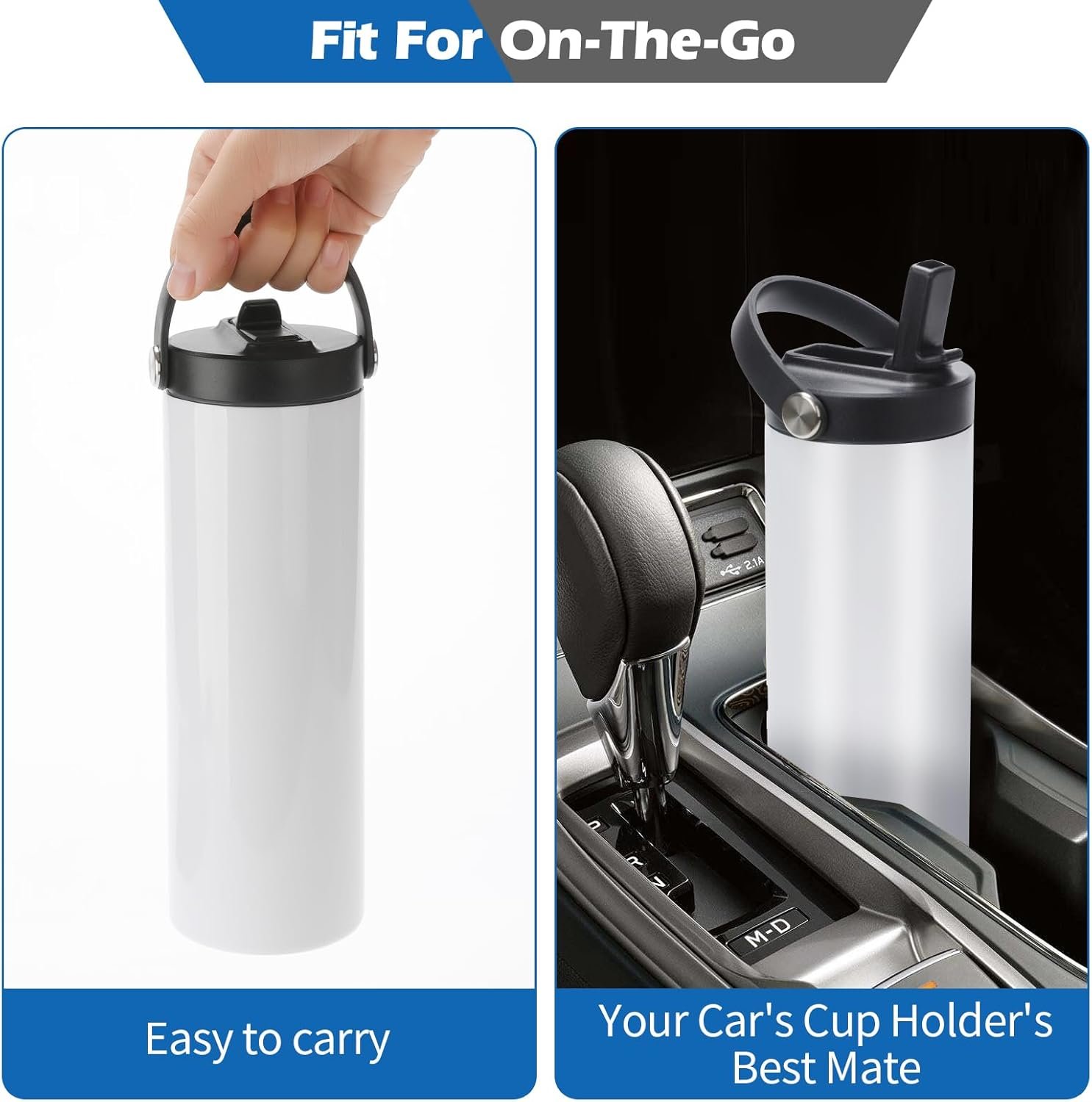 25 Pack Sublimation Tumblers Flat Edge Blanks Skinny Straight 20 oz, Stainless Steel Double Wall Insulated Sublimation Water Bottles with Portable Handle & Straw Lids for Heat Transfer, White