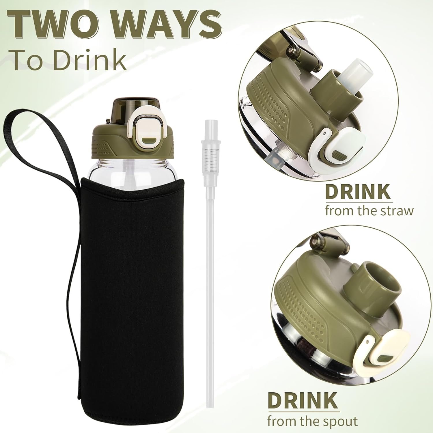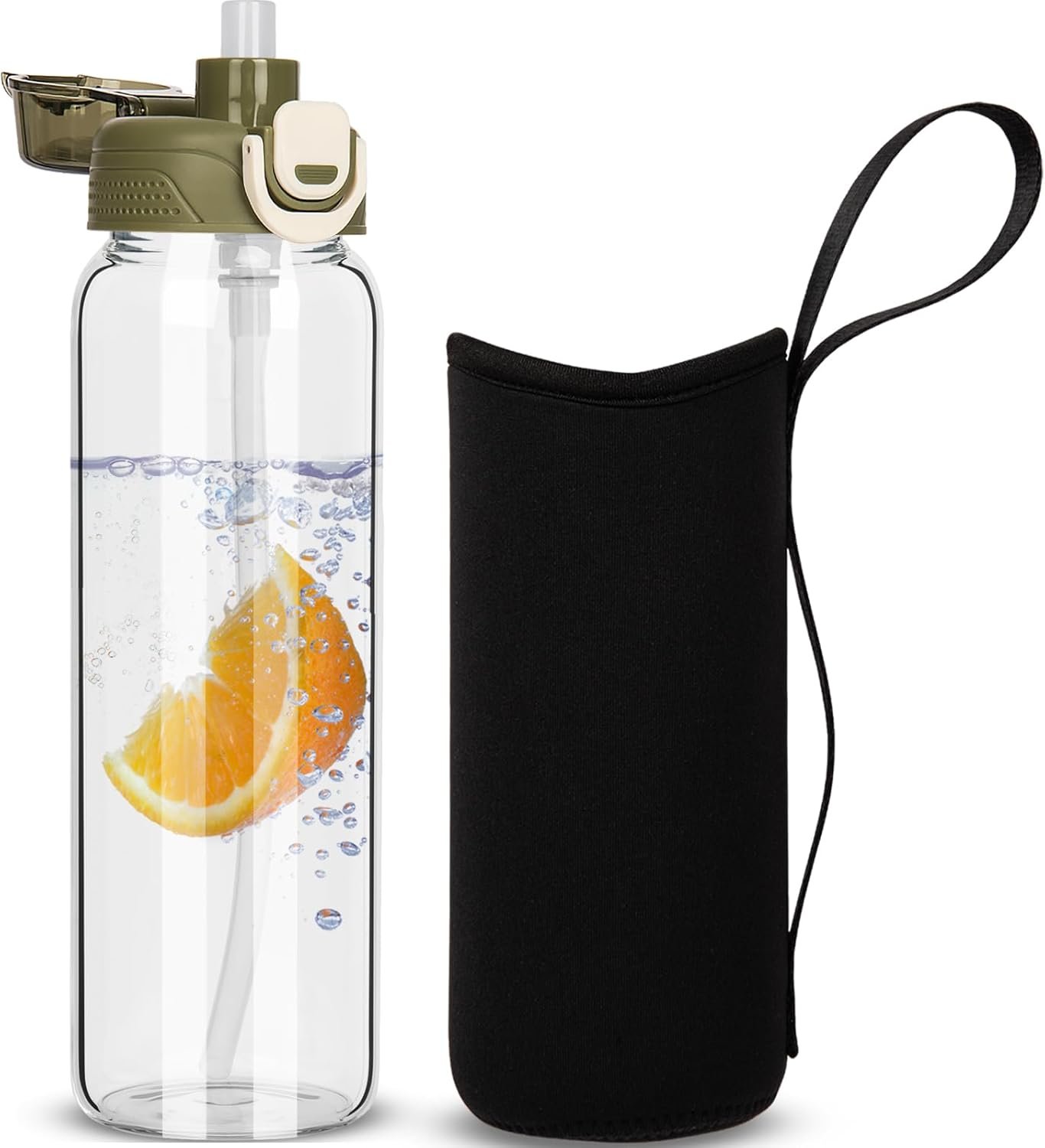 26 oz Sports Glass Water Bottle with Straw & Neoprene Sleeve BPA free Glass Drinking Bottle for Gym, Travel, Smoothie