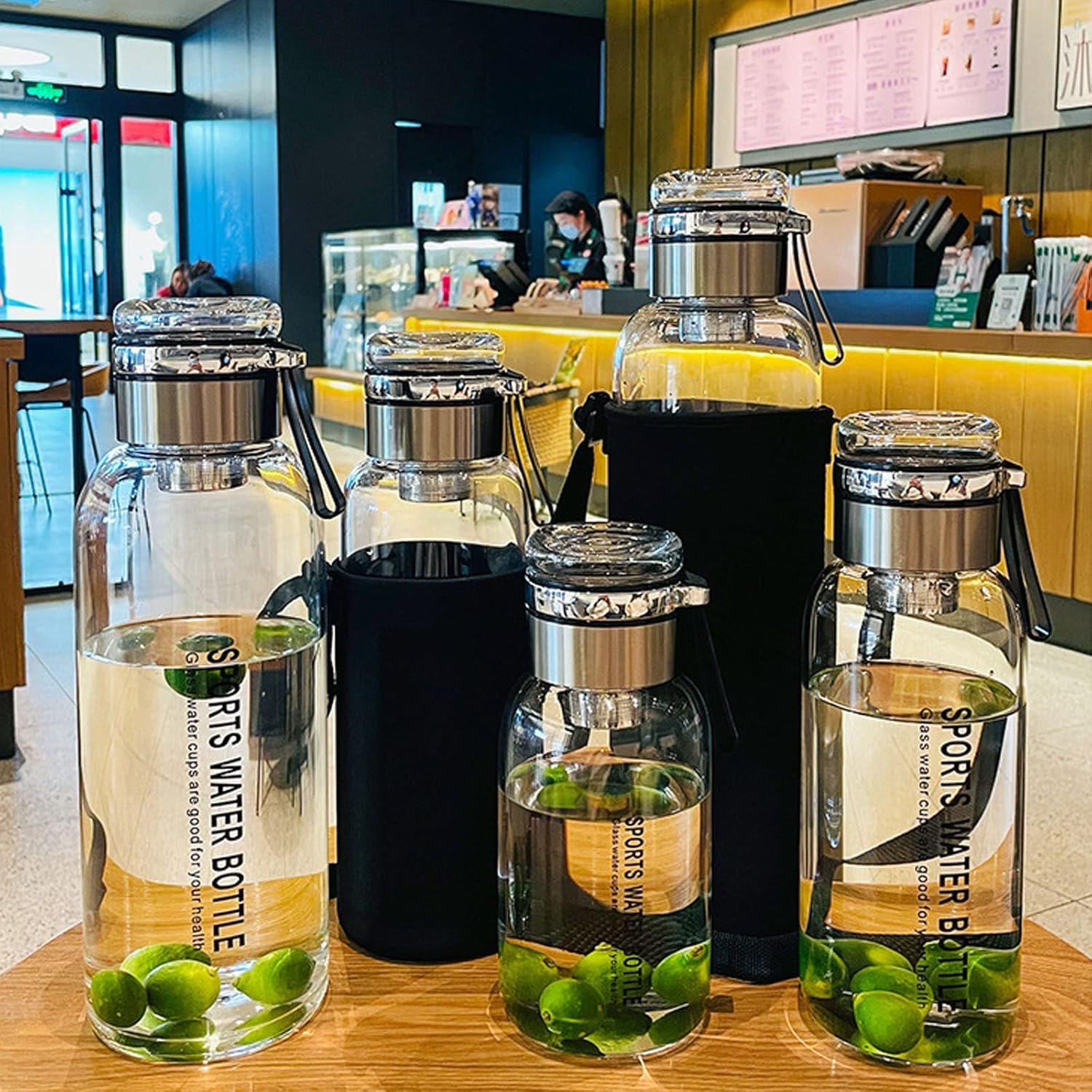 2L Glass Water Bottle with Strap Outdoor Travel Sports Portable Leak Proof Beverage Tea Glass Bottle (Glass,2000ml)