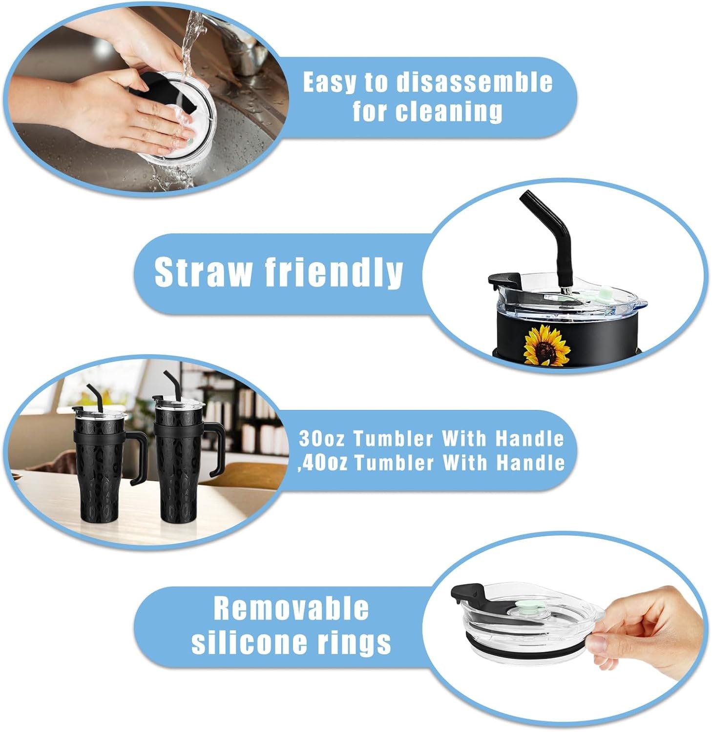 Perfect match: The lid is suitable for 30/40 ounce cups. Please refer to the size of the lid in the detailed picture before purchasing to ensure it fits your cup.