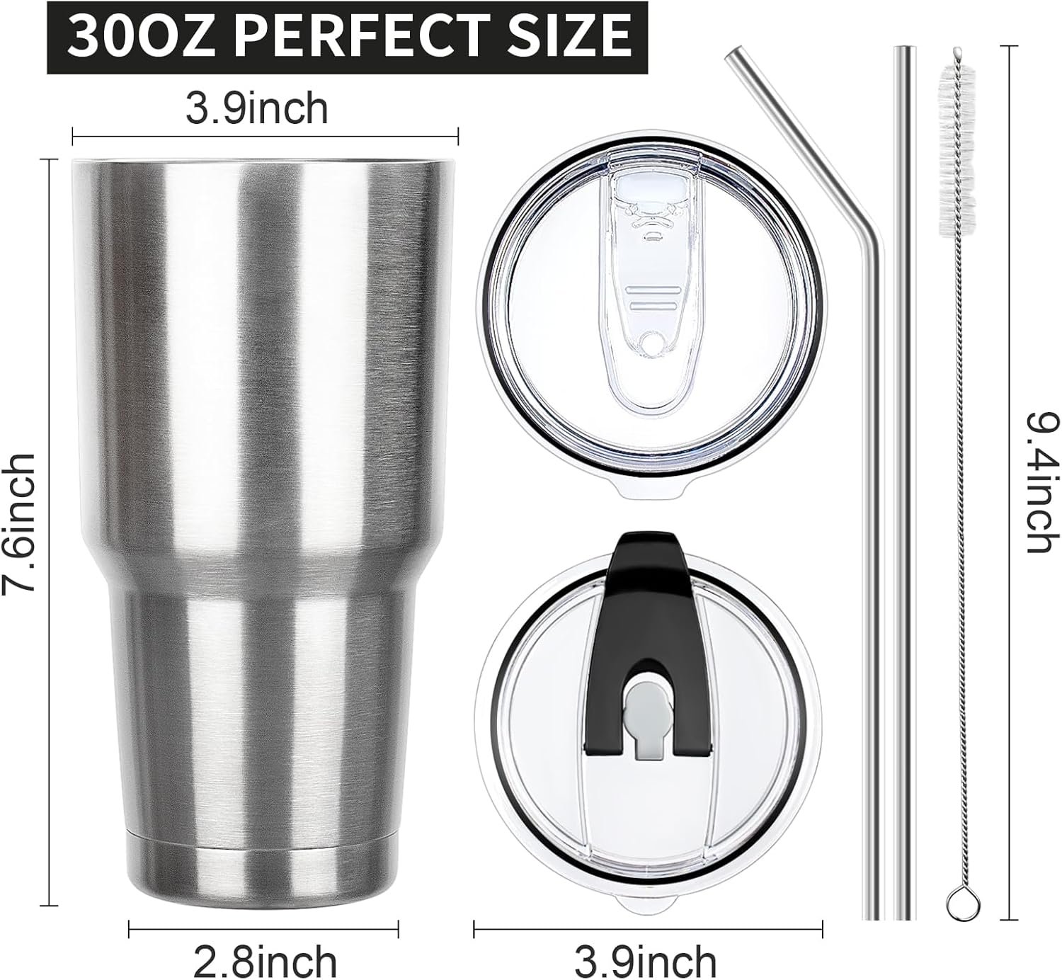 🥂[𝐏𝐚𝐜𝐤𝐚𝐠𝐞 𝐈𝐧𝐜𝐥𝐮𝐝𝐞𝐝]: Tumbler set comes with 1*30oz tumbler+2*leak-proof lids (flip lid & straw lid) +2*stainless steel straws+1*straw brush.We provide excellent after-sales service.If you are not positively thrilled with our thermal tumblers, please contact us and we will make every effort to solve your problem.