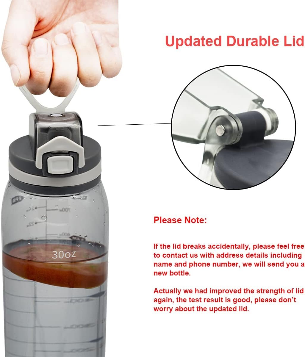 30oz Sport Water Bottle with Time Markers, Large Durable Gym Plastic Bottle Tritan BPA Free for Fitness, Outdoor Enthusiasts, Leakproof Clear Gray (Pack of 1)