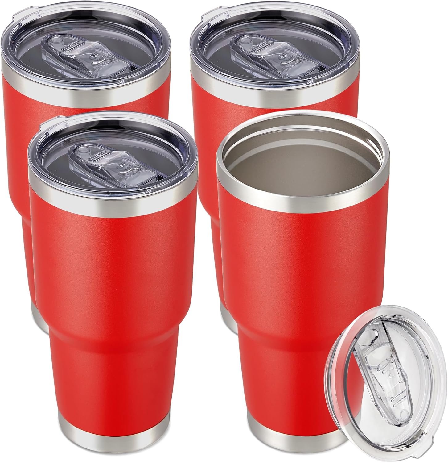 30 oz Tumbler with Lid Stainless Steel Tumblers Bulk Vacuum Insulated Cup Reusable Powder Coated Travel Mug Double Wall Leak Proof Cups Keep Cold Drinks for 12 Hours Wine Red, Set of 4