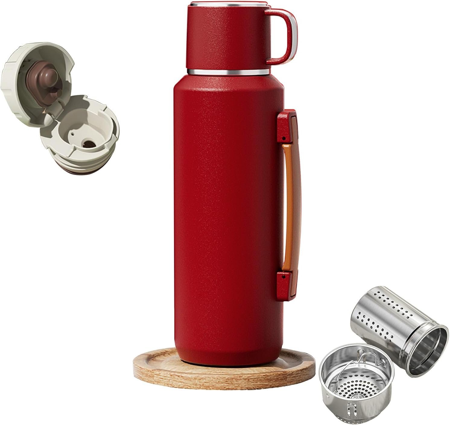 【Innovative Design】 This insulated water bottle features a practical silicone handle and a removable tea compartment, allowing you to easily brew your favorite tea and store it separately from your beverage. 【Non-Slip Base】Silicone base design ensures quiet placement and prevents damage to tabletops.