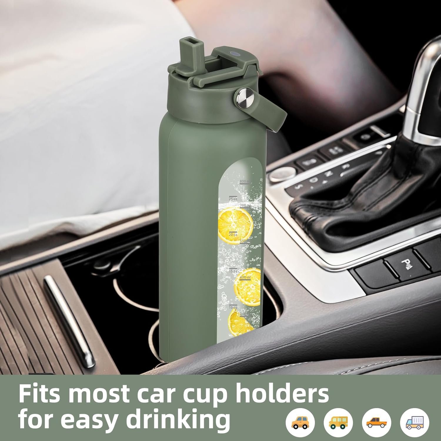 TRACK HYDRATION AND TIME MARKER DESIGN:32oz glass water bottle with time marker preserves the purity of water.Large capactiy allow you not to refill it frequently anymoe.Helps you stay hydrated and daily heath.