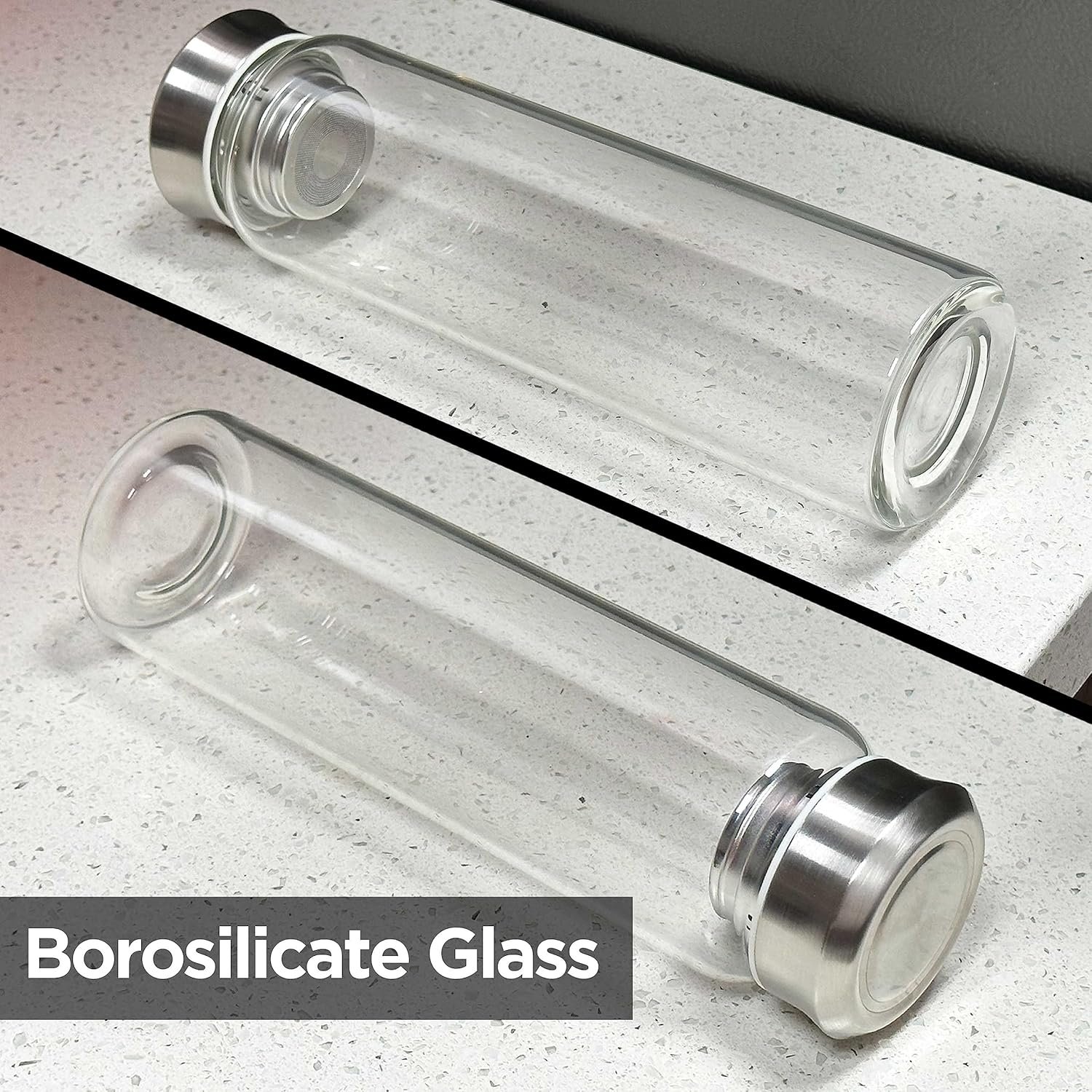 Borosilicate glass, keeps your water tasting fresh and delicious. Dishwasher safe for glass part.