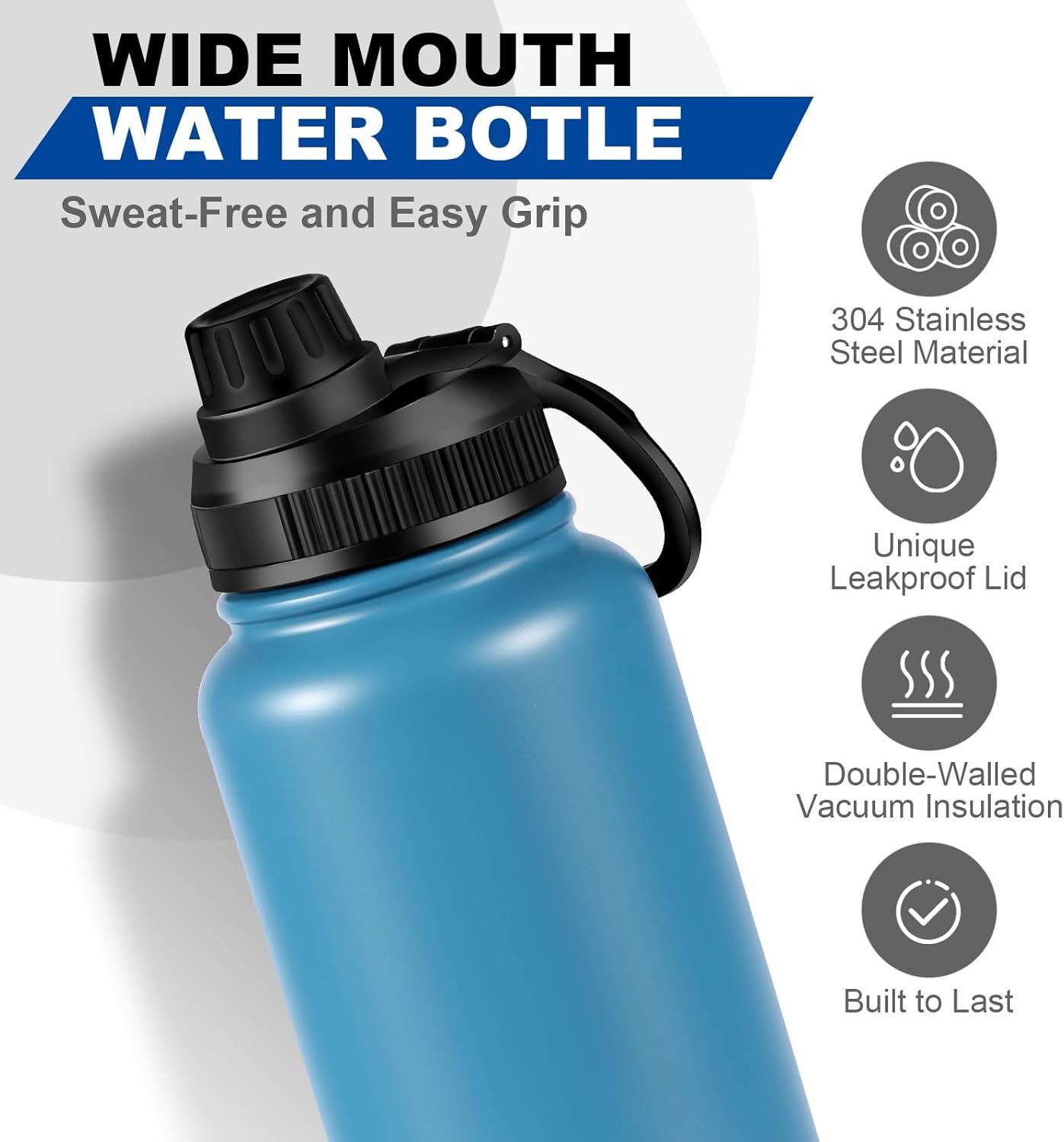 32 oz Insulated Water Bottle, Keep Cold 24H, Leak Proof Stainless Steel Water Bottle with Spout Lid