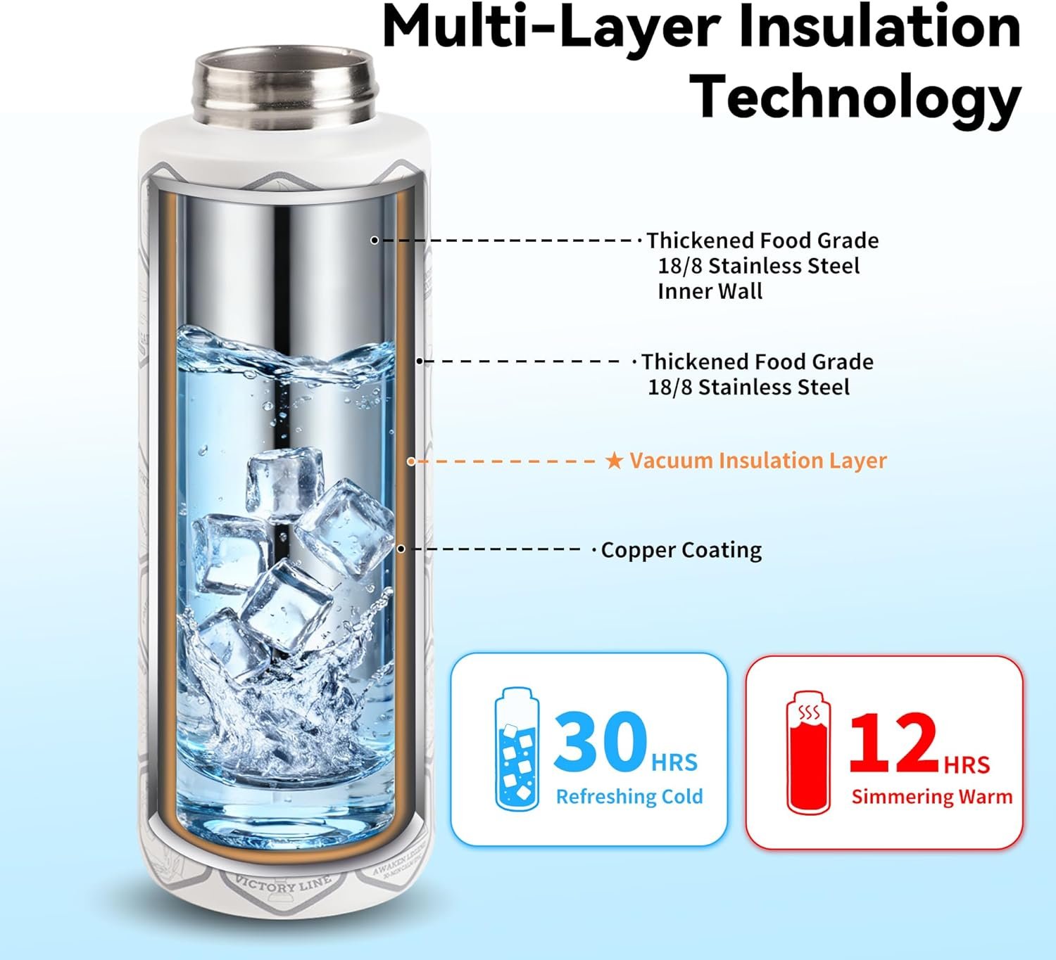 Triple-Layer Insulation – Cold 30H / Hot 12H: Advanced insulated water bottle technology keeps drinks ice-cold for 30 hours or hot for 12. Enjoy perfectly chilled or warm beverages anytime, wherever life takes you, keeping refreshment and comfort always within reach