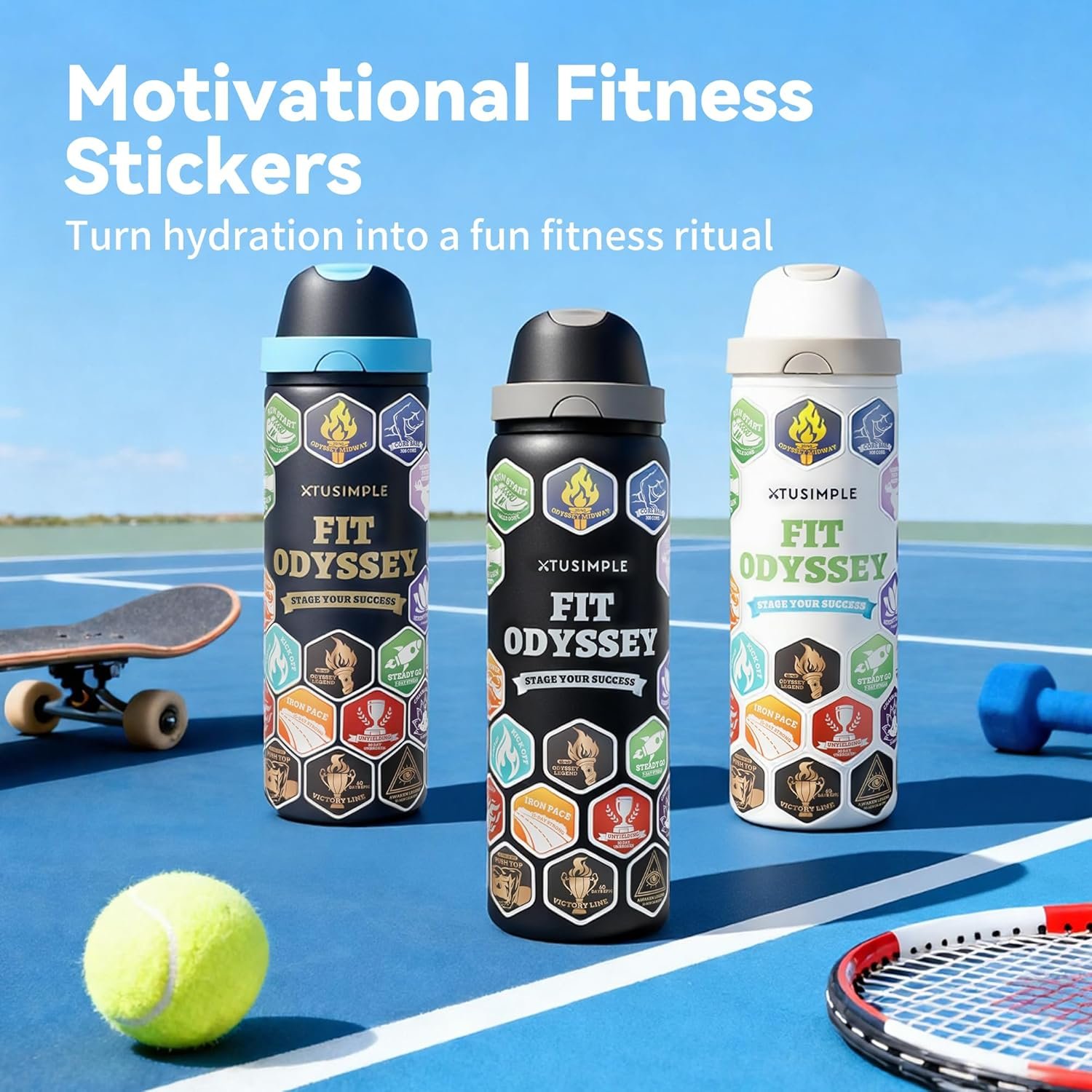 Includes waterproof vinyl fitness stickers (no messy residue)