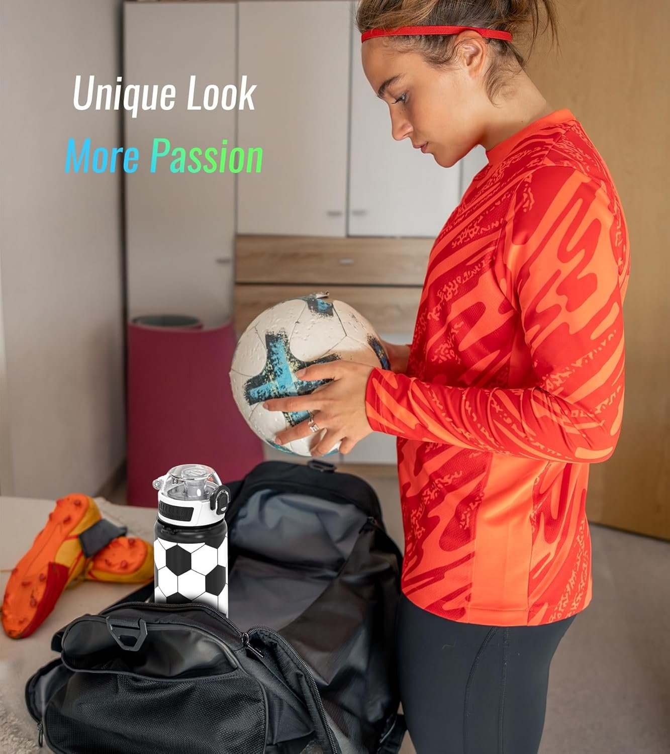 Pattern: Realistic soccer exterior, even the panels are slightly 3D touch textured for extra game passion. Great gift for a soccer fan/teen: so eye-catching! ● Vol Markers: Both milliliter and fluid ounce are on the volume scale. ● Accessories: Includes a 5 cm long silver-colored O-shape aluminum carabiner, so you can latch onto any backpack. ● NOT A TOY. For drinking use only.