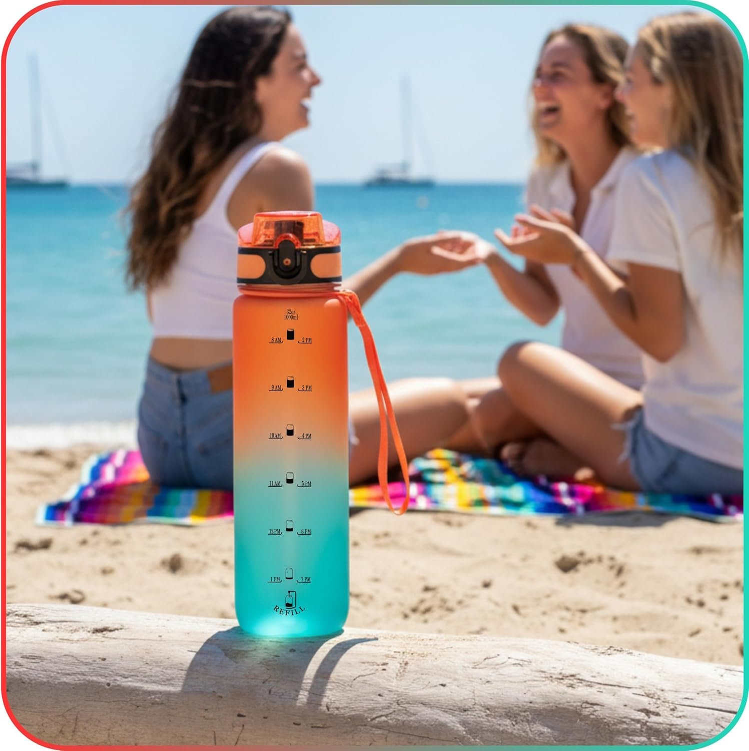 32oz Tritan Water Bottle with Time-Marked, 2 Lids (Fast Flow & Straw) – BPA/BPS Free, Leak-Proof, Airtight, Reusable Water Bottle – Perfect for Sports, Hiking (Gradient Orange/Cyan)