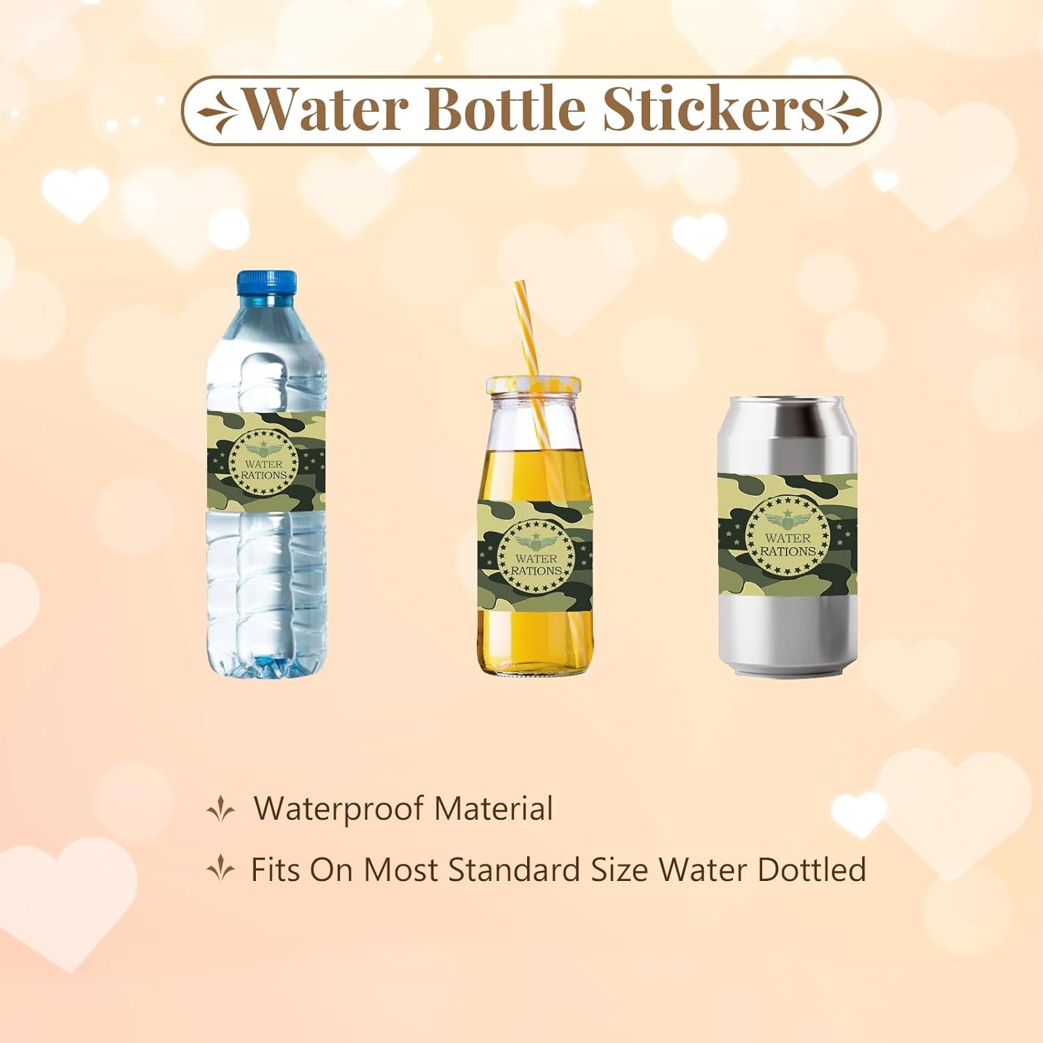 🎂🪖【Army Themd Water Bottle Labels】 These water bottle sticker wrappers are made from quality self-adhesive paper material with glossy coatings. These would look amazing in decorating your party. It’s not only a perfect decoration but also a nice photo props. Come and decorate your party!