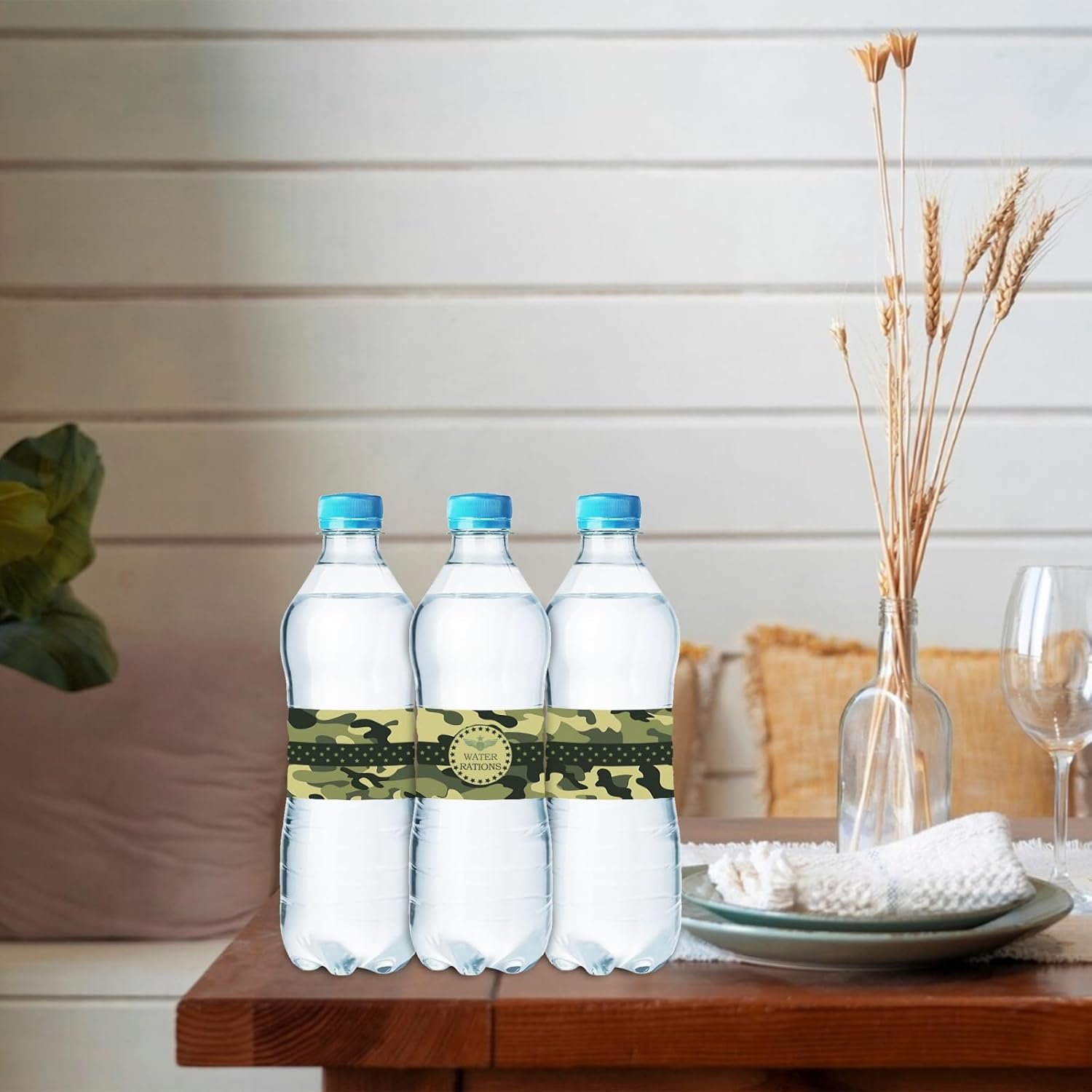 32PCS Camouflage Water Bottle Labels, Army Military Water Bottle Stickers for Boy, Army Camouflage Birthday Water Bottle Wrappers, Military Themed Party Decoration