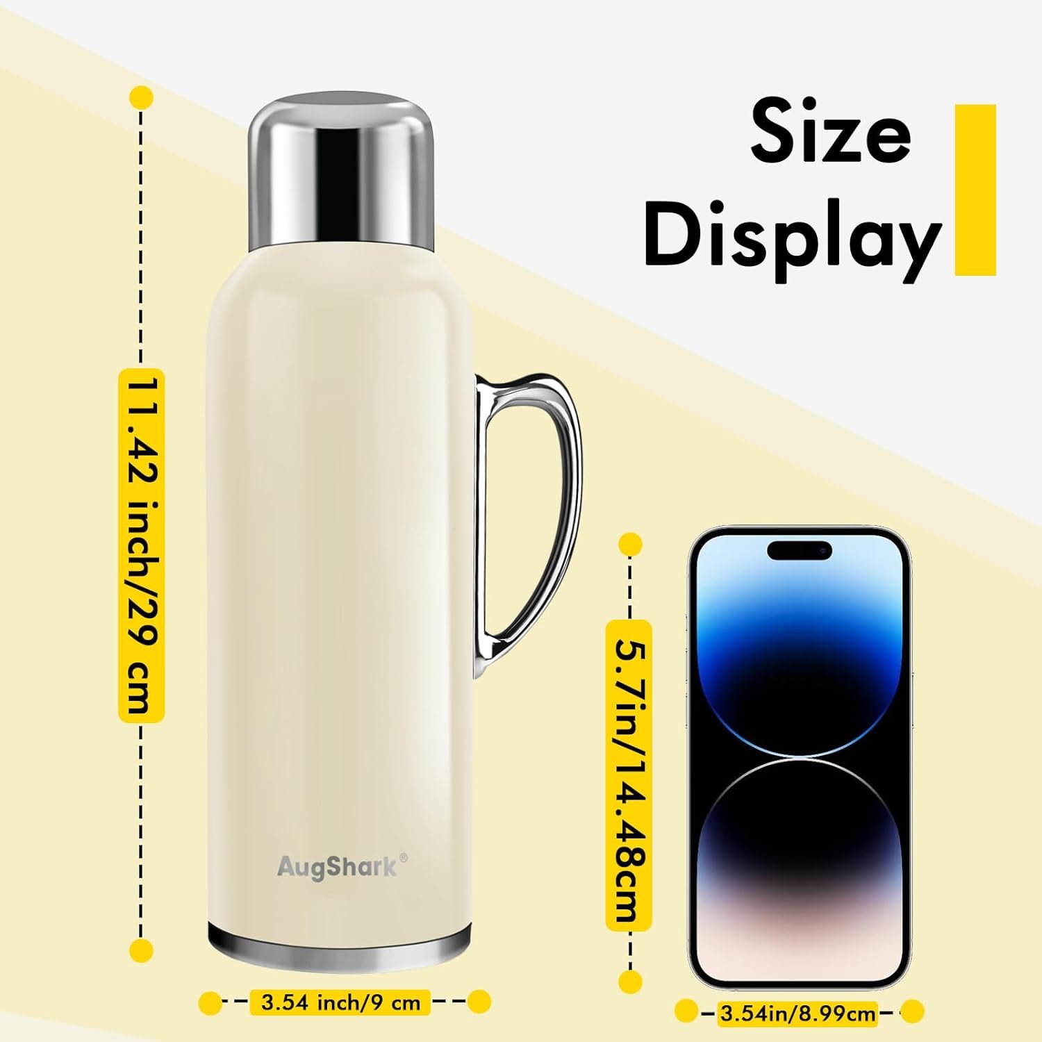 🚴【UNIQUE SWITCH METHOD】Unlike traditional flip and knob covers, Augshark’s 34oz/1000ml thermos can be operated with one hand by simply pressing the mechanical temperature measuring device on the cup lid once, opening the lid and pouring water in one second, making drinking water simpler and more efficient.