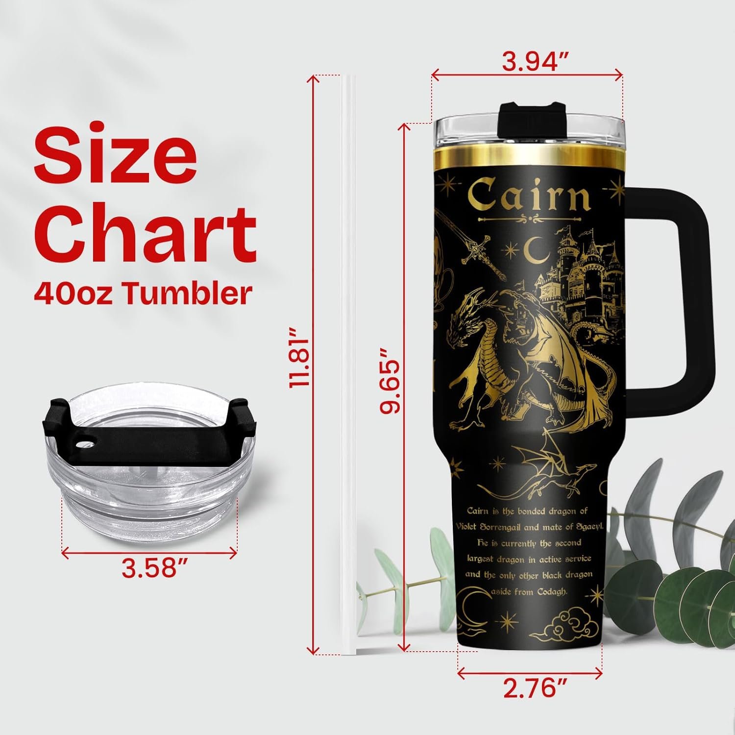 34HD Fantasy Dragon Rider Tumbler 40oz with Lid and Straw, Laser Engraved Adventure Stainless Vacuum Cup – Mythical Wing Inspired Birthday Bookish Gift for Fantasy Fans and Readers