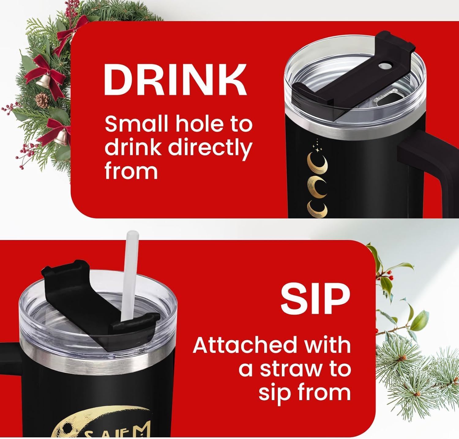 Celebrate the holidays with our 40oz tumbler with handle