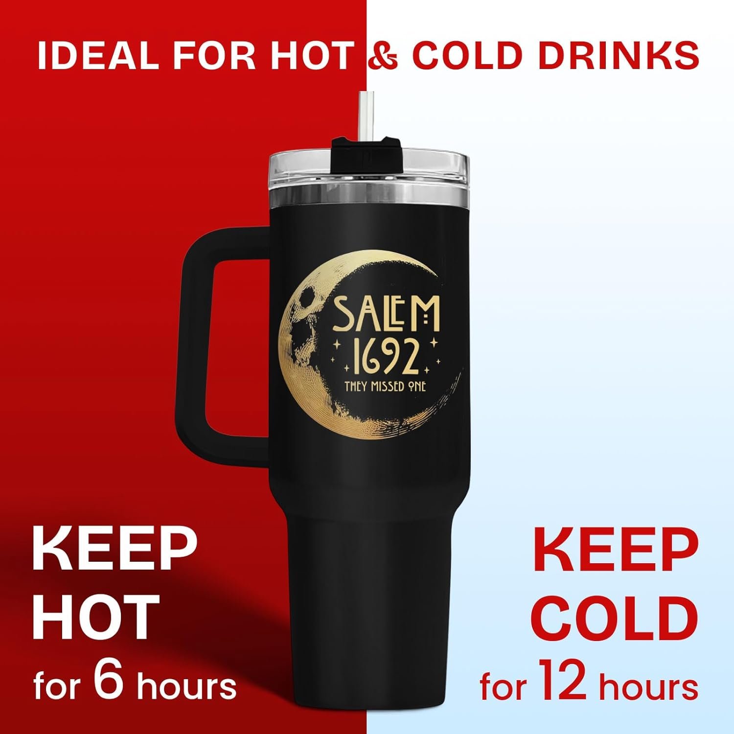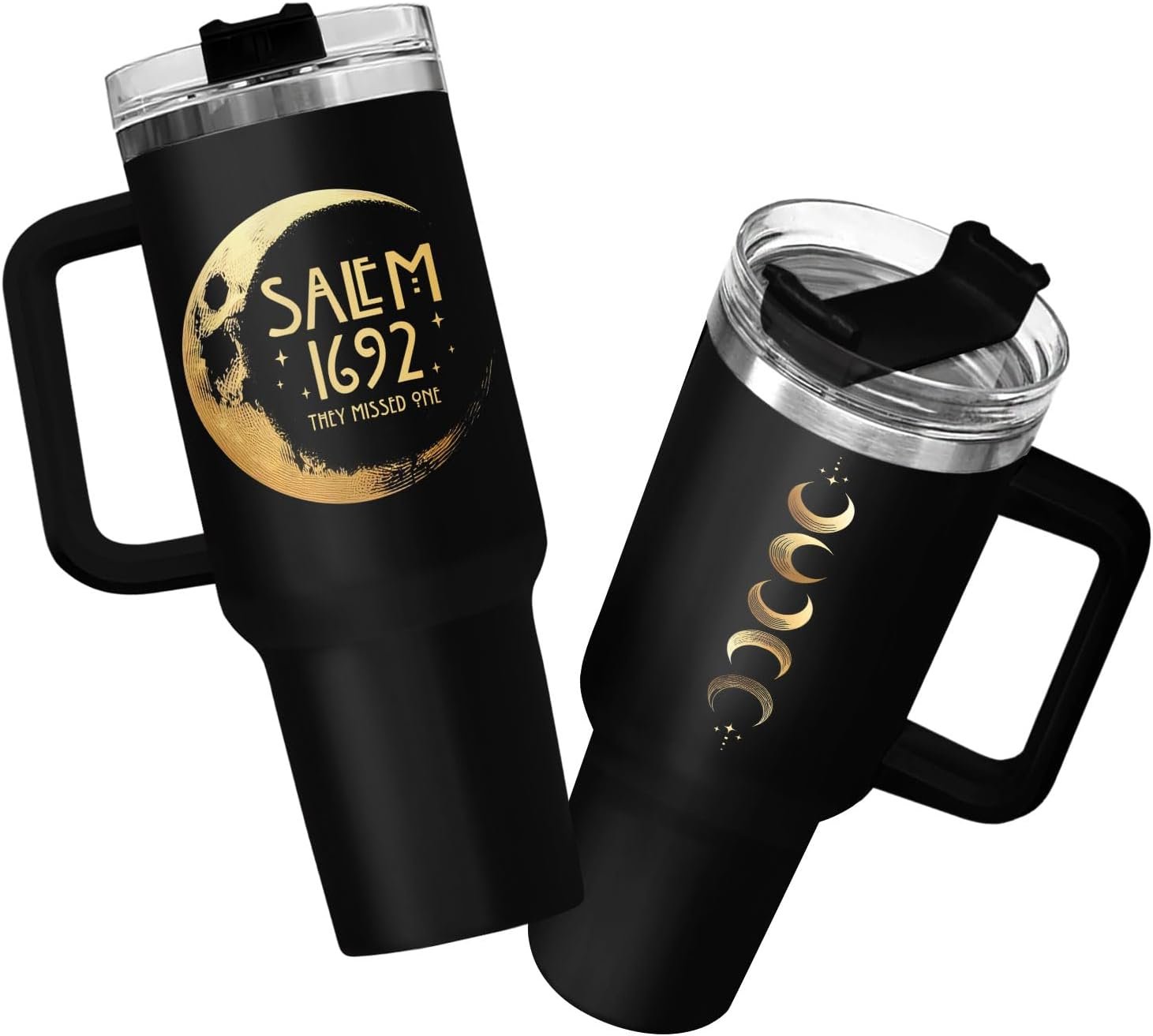 34HD Salem Witch Tumbler 40oz with Handle and Straw, Spooky Festive Moon Vacuum Insulated Cup – Laser Engraved Birthday Festive Gift for Him Her & Book Lovers