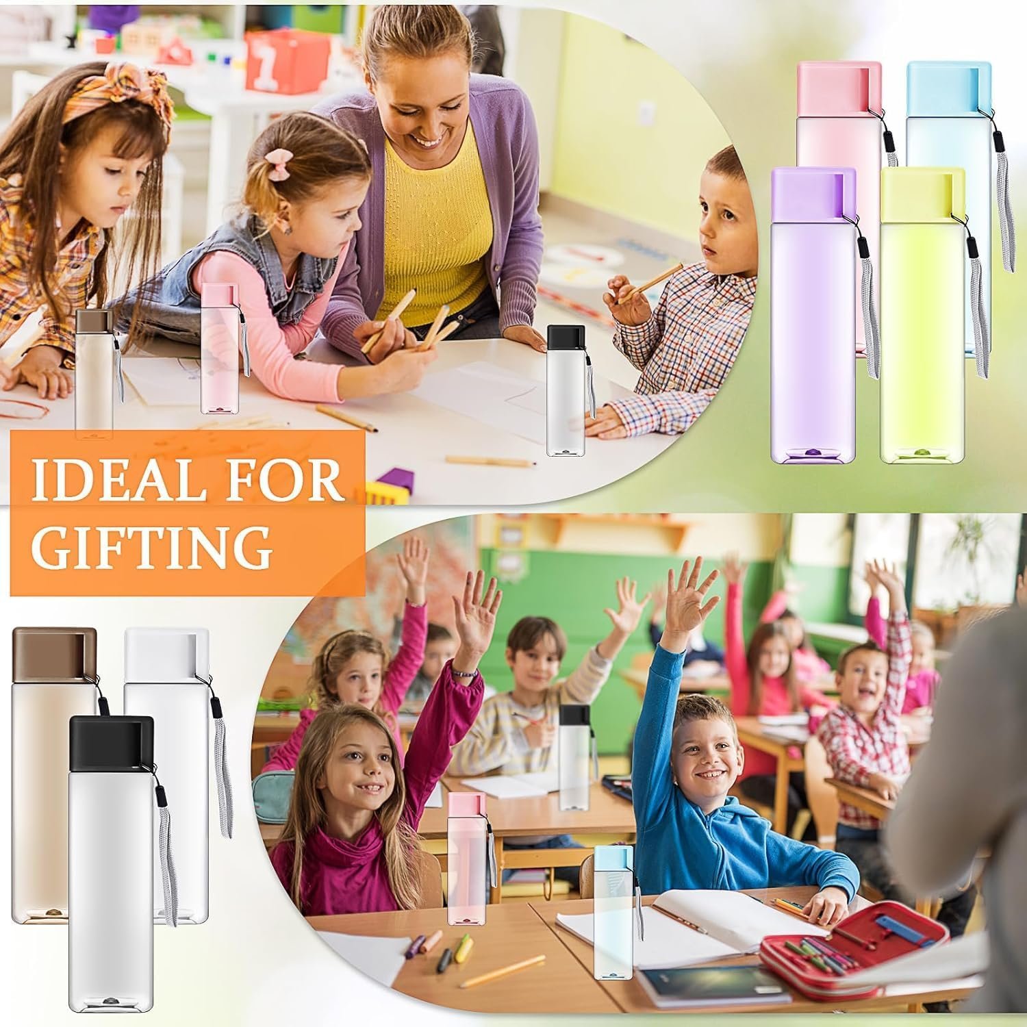 Perfect Size for Portability: Crafted for young hands, our sports water bottles measure approximately 5.5 x 5.5 x 19.5 cm / 7.6×2.17×2.17 inches, delivering easy grip and fitting seamlessly into cup holders and small bags. Meanwhile, they are designed with a lanyard, making it convenient to carry around
