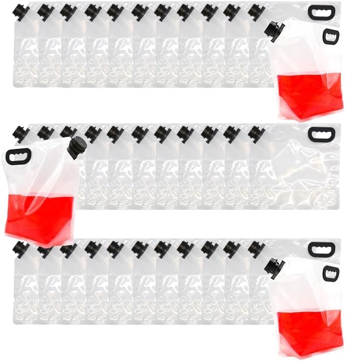 36 Pack 1.3 Gallon 5 Liter Food Grade Drink Carrier Water Pouch with Tamper-Evident Cap, Freezable Collapsible Take Out Beverage Bag for Catering Event Outdoor Sport Camping Hiking Emergency