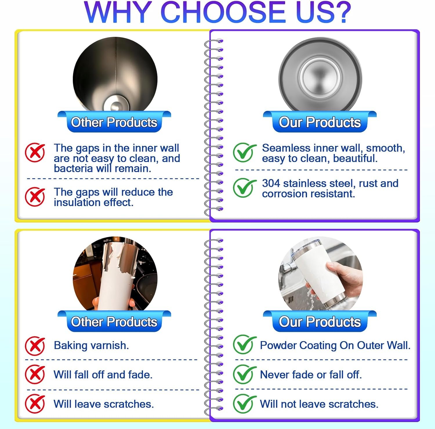 【Blank Tumblers Bulk & Laser Engraving Ready】Create personalized gifts with our blank 20 oz tumblers bulk! The smooth powder-coated surface is perfect for sublimation, vinyl, or laser engraving. Compatible with most engraving tools and design software. Unleash your creativity!