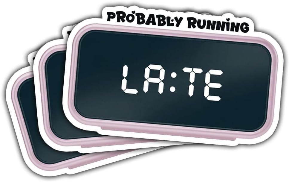3Pcs Probably Running Late Sticker Gift Funny Digital Clock Probably Running Late Stickers for Students Time Anxiety Office Workers Coworkers Car Decal for Laptop Water Bottle Toolbox Phone Case 3″