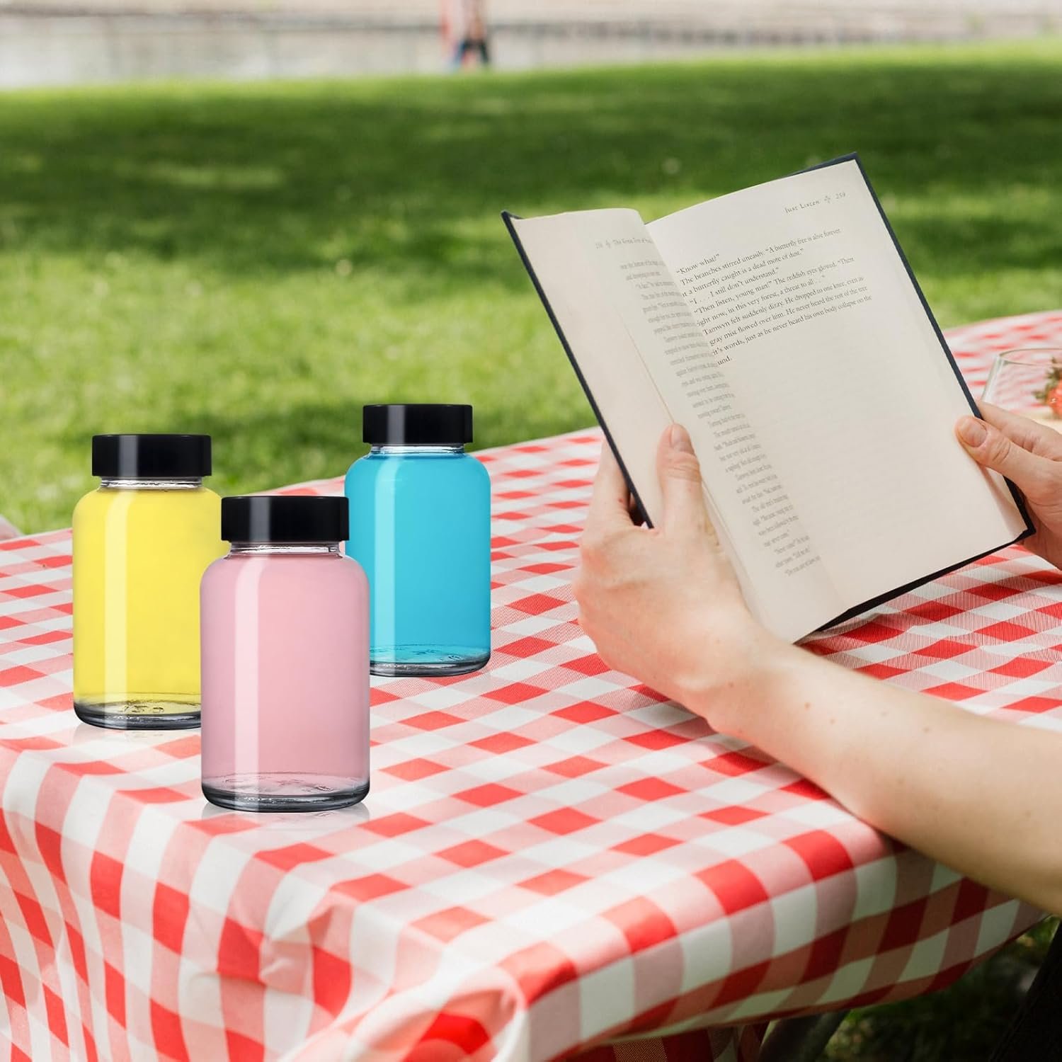 Superb Quality: The bottles are made of quality heavy-duty clear glass, thick and scratch-resistant, good for daily use. The lids are made of premium plastic, convenient to use and not easy to deform, can be reused for a long time. Refrigerator safe