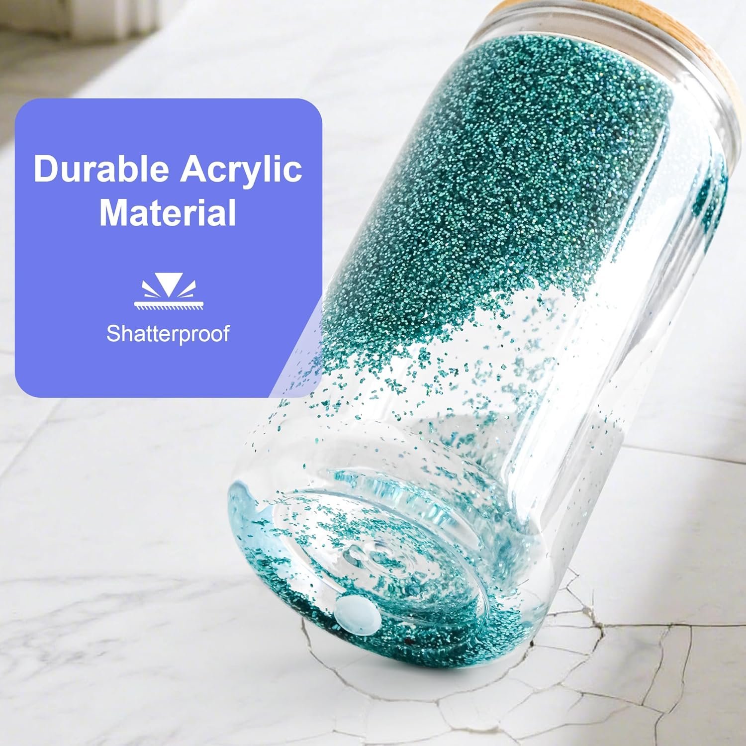 PACKAGE INCLUDE: This set has 4 pcs 16 oz plastic pre-drilled snowglobe tumblers (approx. 2.95″ dia, 5.52″ ht), 4 pcs matching bamboo lids, 8 pcs rubber stoppers, 4 pcs reusable straws, and 4 pcs gift boxes, covering your personalized drinking needs.