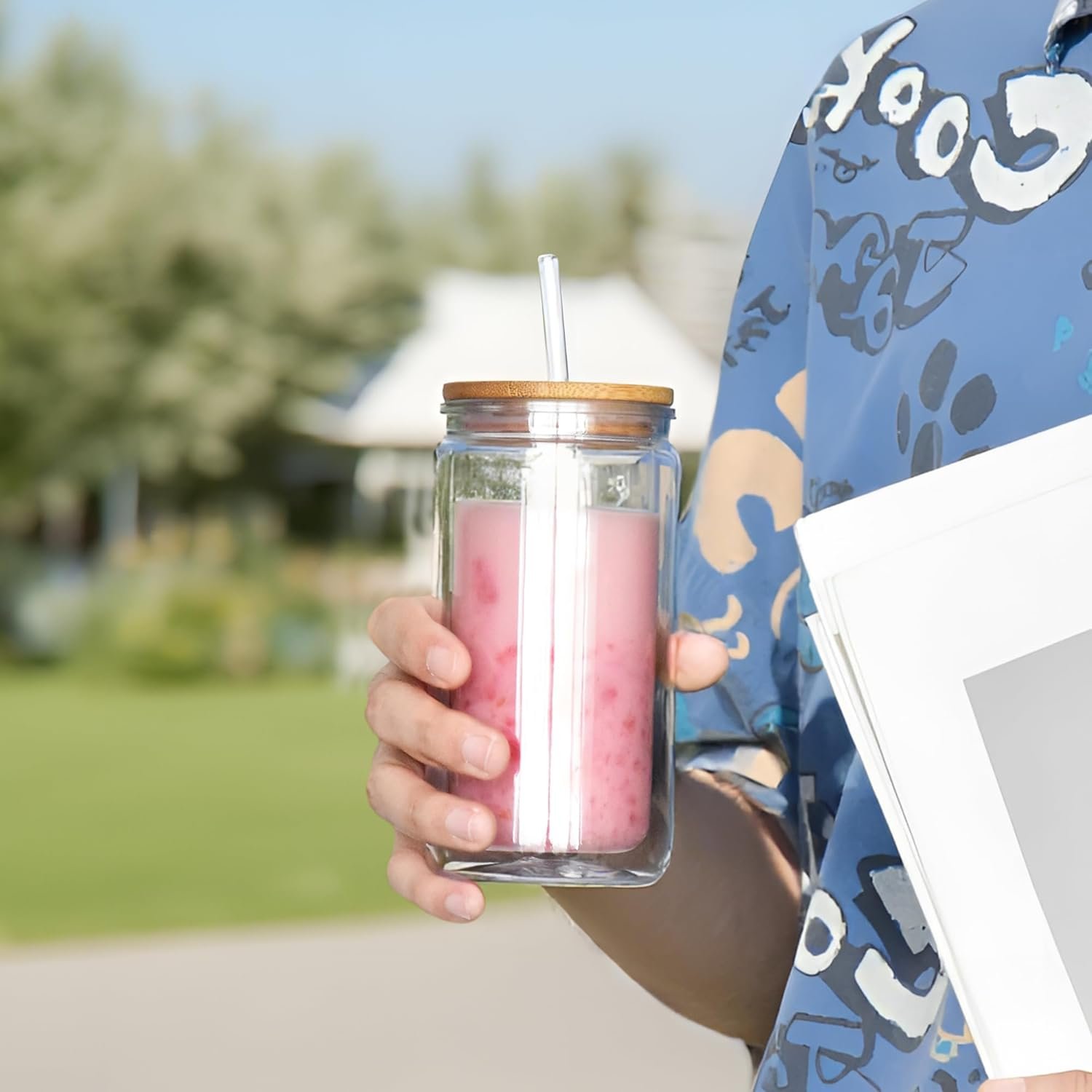 SAFE AND DURABLE: Made of food-grade plastic, it’s lead and BPA-free. The bamboo lid’s silicone ring prevents splashes and can handle -68F to 212F (-20°C to 100°C). Store any drink you like.