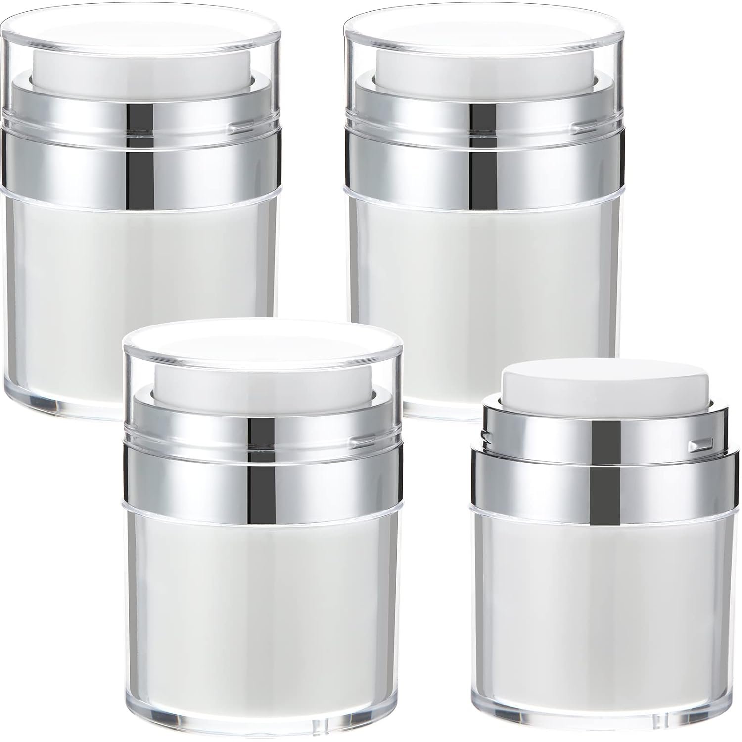 4 Pack Empty Airless Pump Jar Acrylic Airless Cosmetic Container Portable Refillable Travel Size Cream Vacuum Bottle Lotion Jar with Pump Lid for Skincare Cream, White(1.7 oz)