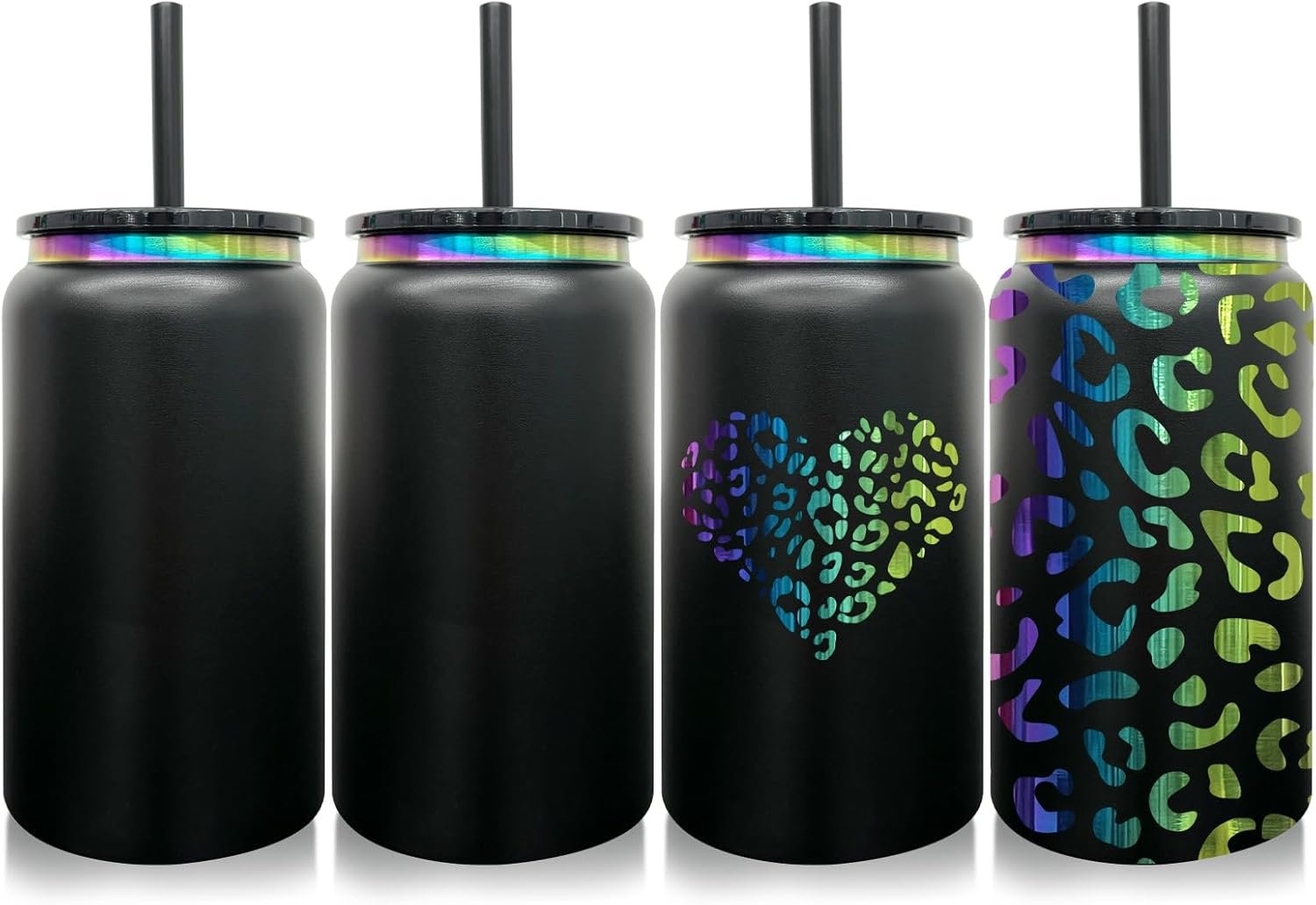 【Colored Powder Coated Tumbler】Different from other stainless steel tumblers, our tumblers are rainbow-plated, they are perfect for laser engraving, vinyl decals or color painting; the rainbow underneath will be revealed after laser engraving. You can create your own personalized tumbler with your own art form