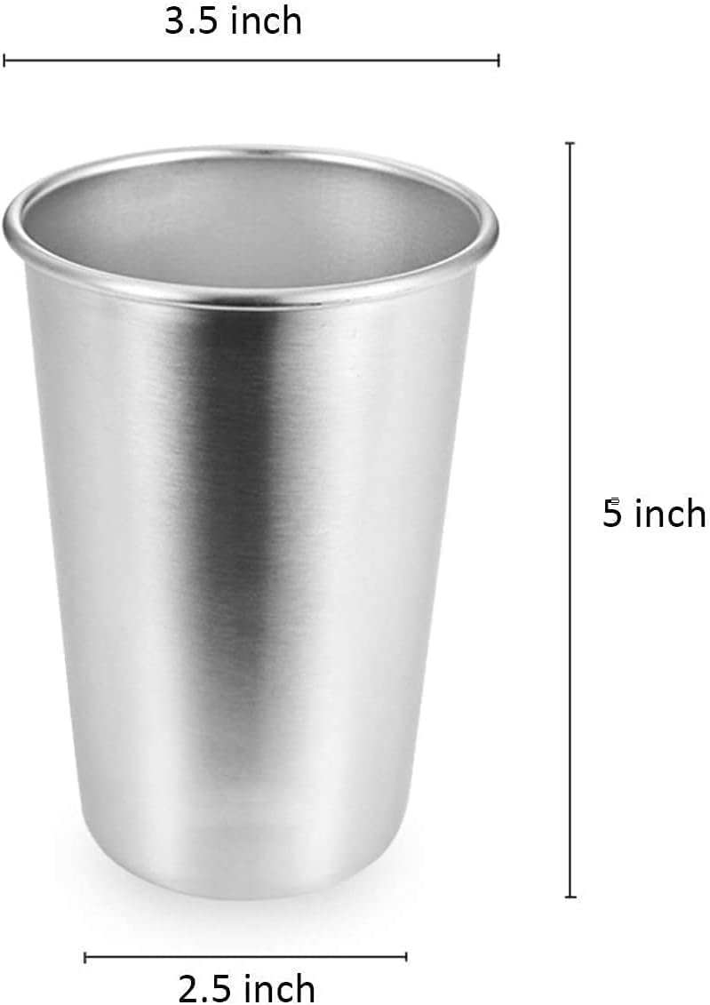 4 Pack 16 oz Stainless Steel Cups, Pint Cup Tumbler, Premium Metal Drinking Glasses – Stackable Durable Cup