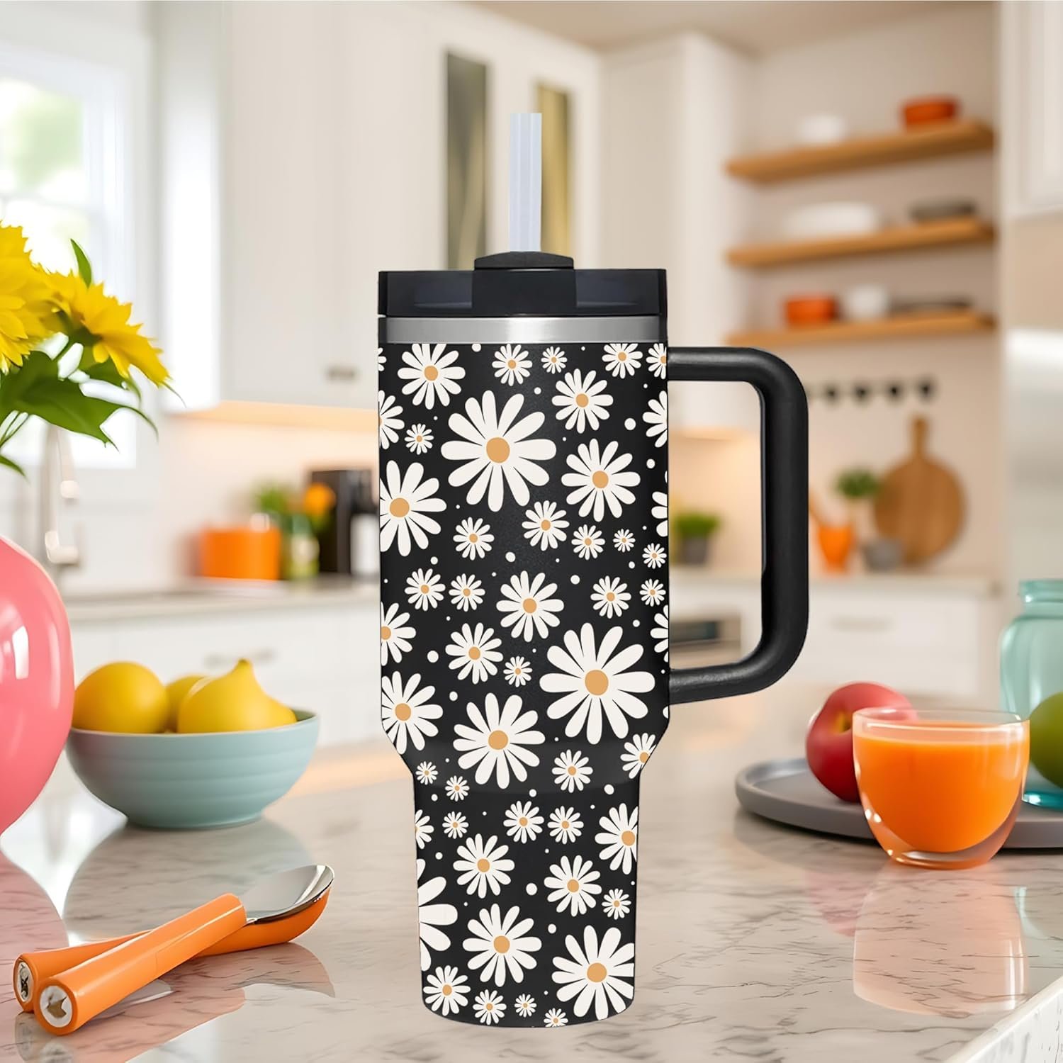 ❤ GIFTS – 40 OZ Daisy Tumbler with Handle.Daisy Lover Gifts.Unique Birthday Christmas Gifts for Daisy Lover.Personalized 40 OZ Daisy Tumbler Gifts for Women Men.