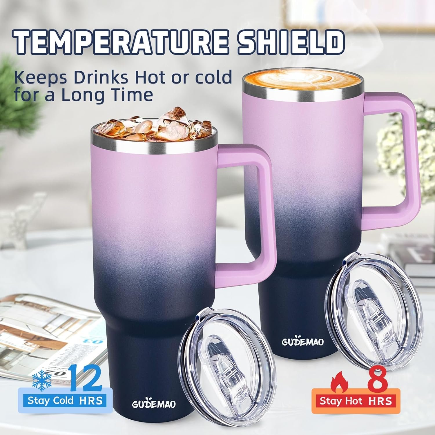 ODORLESS CERAMIC INNER COATING:The GUDEMAO 40 oz insulated coffee mug is made of high quality food-grade 18/8 stainless steel and genuine ceramic inner coating to ensure your coffee tastes more pure. The ceramic inner coating not only keeps your beverage pure from odors and grease residue, but also ensures that no flavors are transferred, allowing you to fully enjoy the fresh taste of your coffee with every sip.