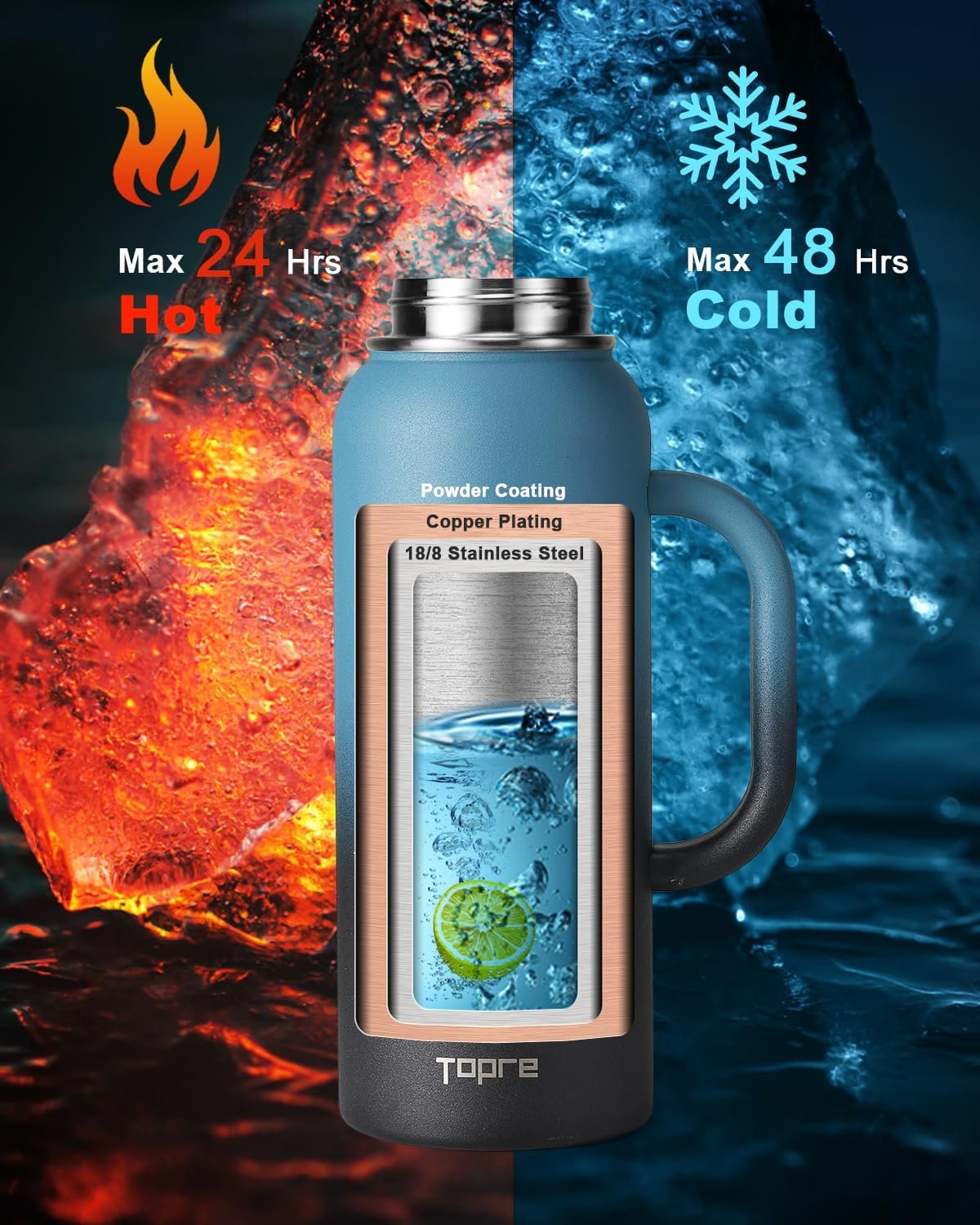Easy-Grip & Sturdy Handle: Topre 40 oz water bottle features an ergonomic hollow design on its handle, ensuring comfortable grip and easy lifting. Perfect for effortless single-handed use while on the go. Quench your thirst with its generous 40 ounce capacity –prompt hydration at your fingertips.