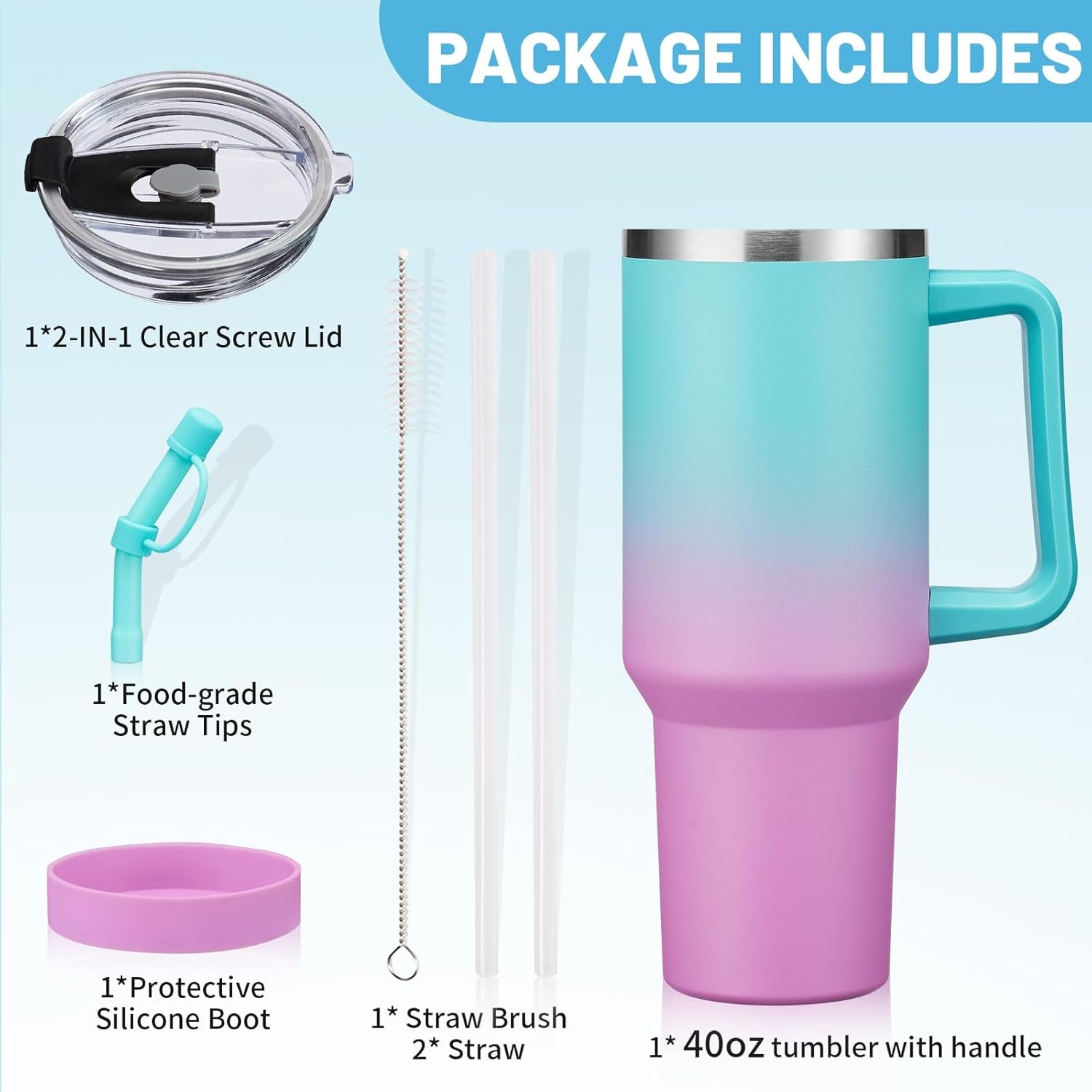 40 oz Water Bottle Tumbler with Lid and Straw – Wide Mouth Travel Coffee Mug with Handle, Reusable Leakproof Stainless Steel Vacuum Insulated Cup Keep Cold 34 Hrs Hot 10 Hrs