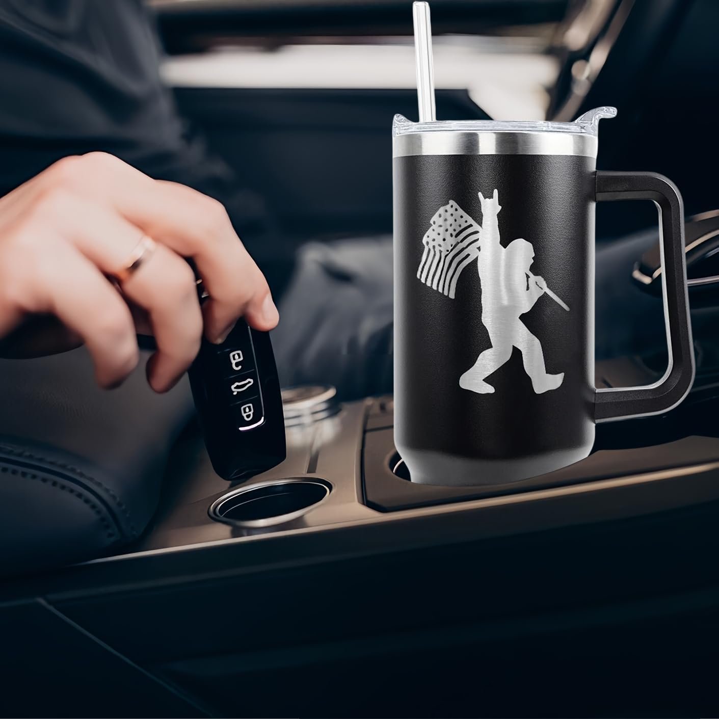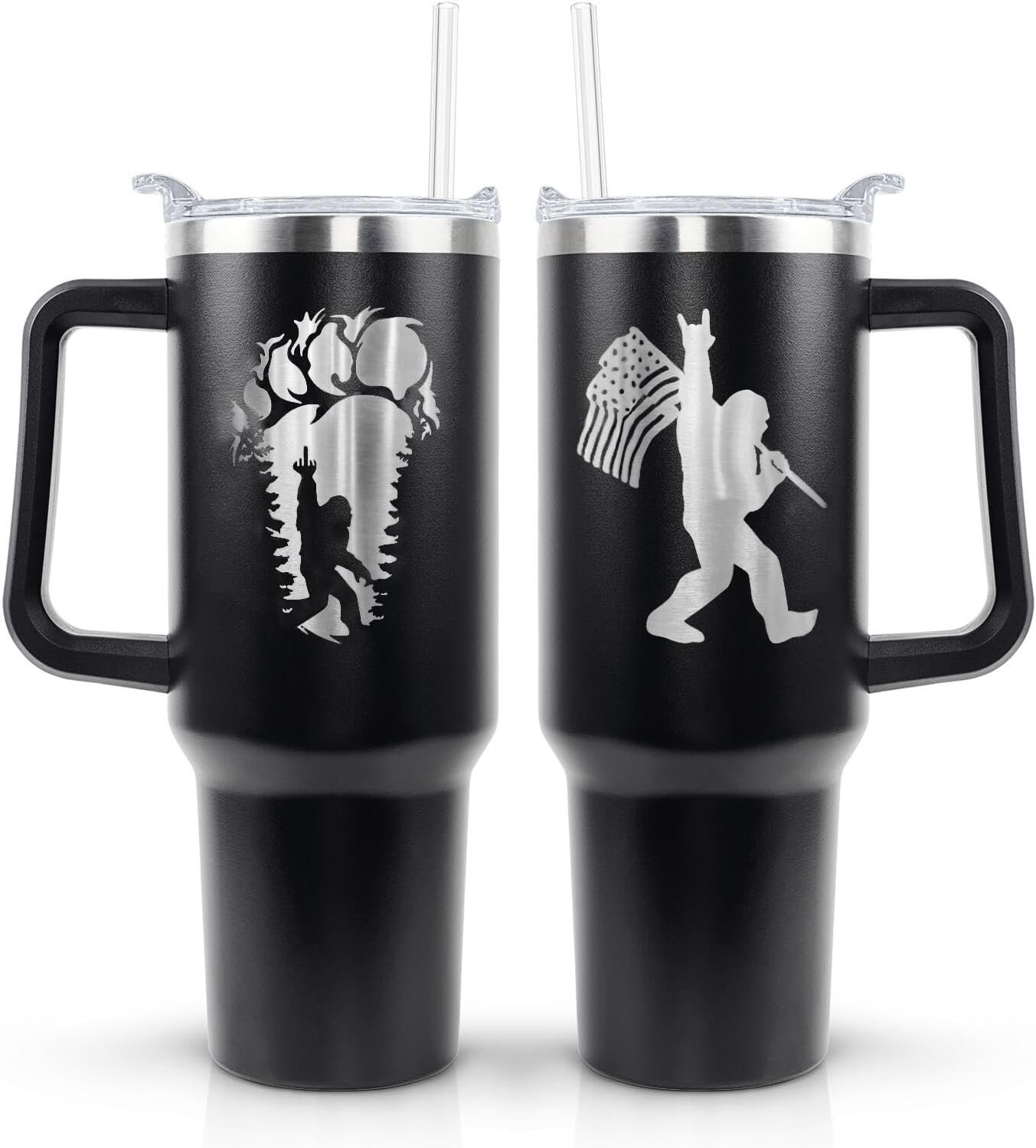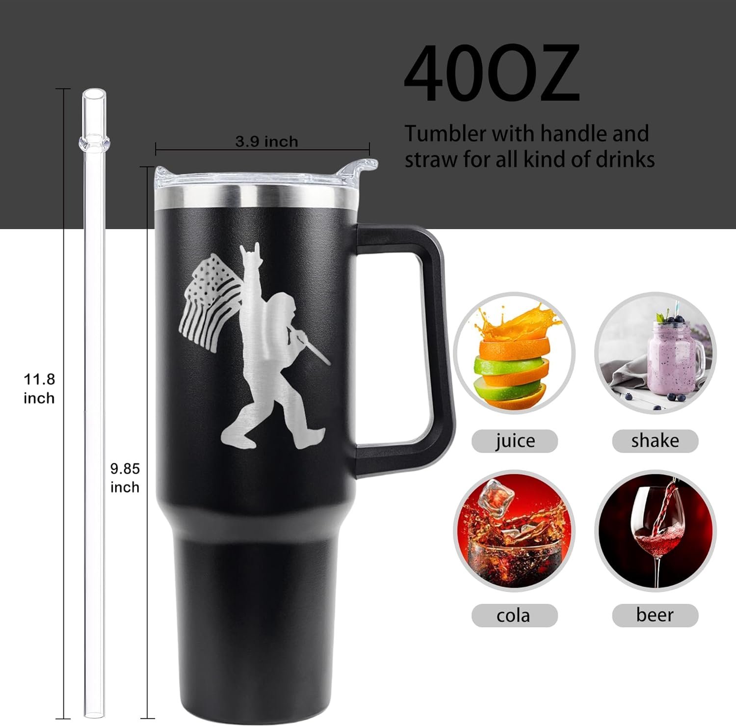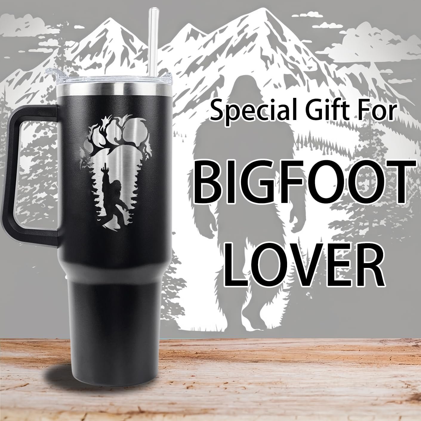 40oz Bigfoot Tumbler with handle and Flip Straw, Sasquatch Big Foot Lover Laser Engrave Stainless Steel Insulated Cup, Travel Coffee Mug Water Bottle, Birthday Gifts for Women Men