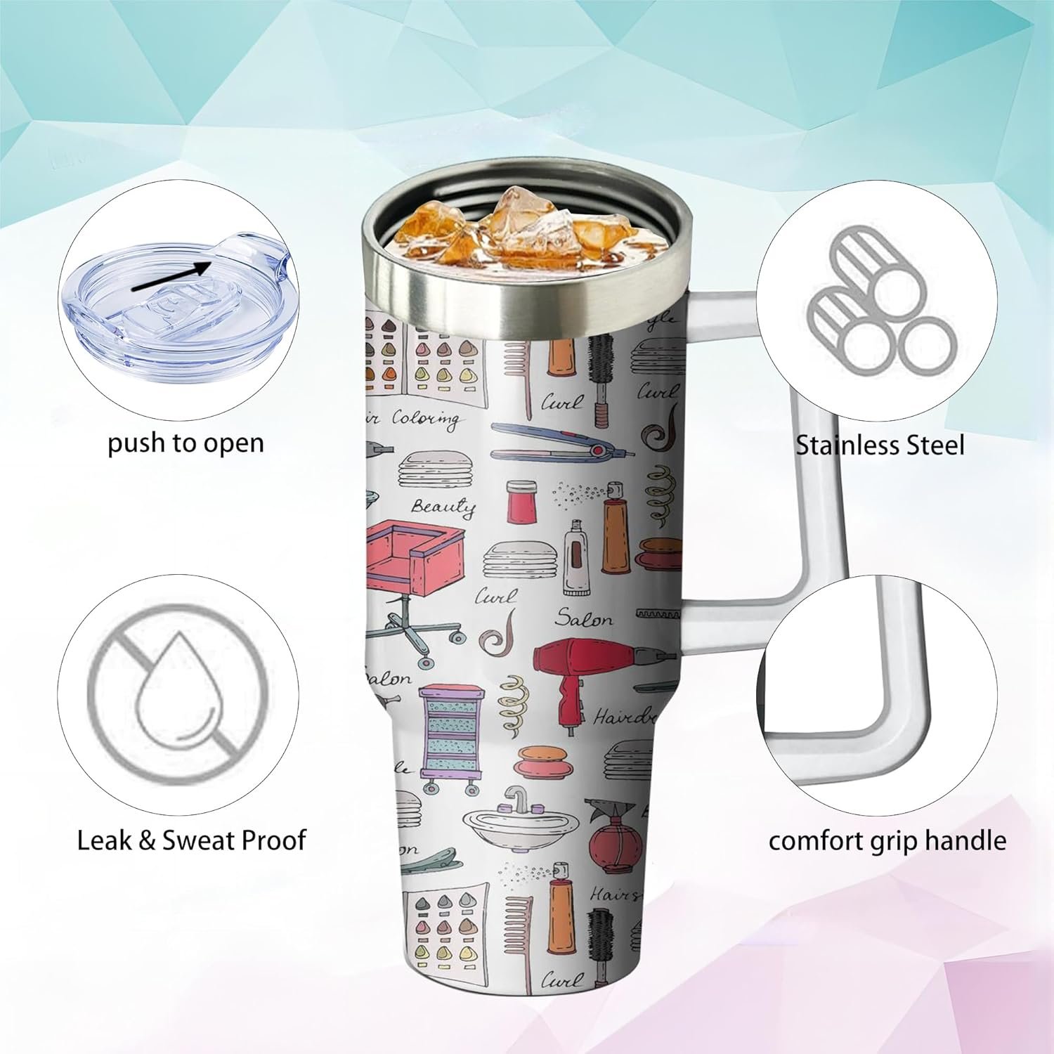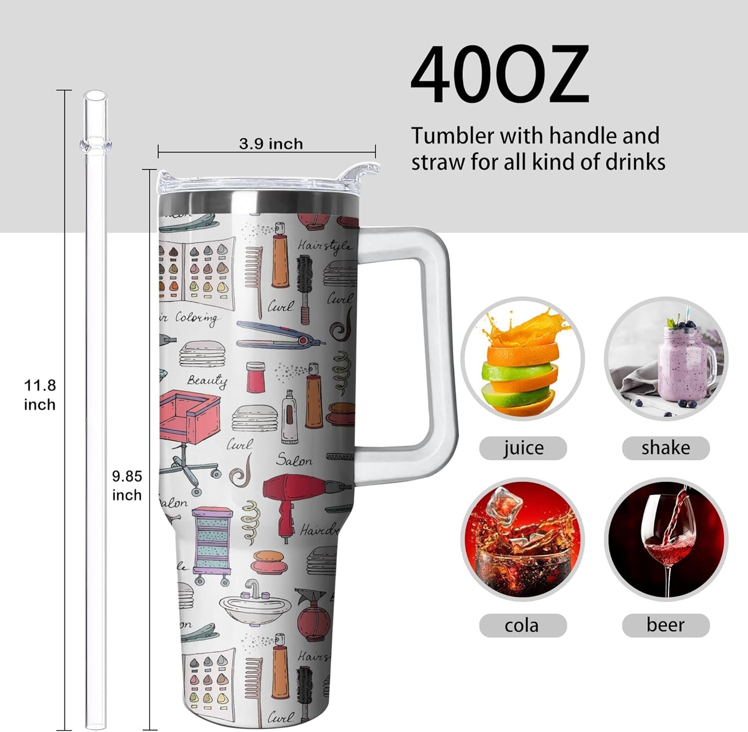 PERFECT GIFTS FOR HAIR STYLIST – Personalized printing tumbler with handle. Best print gift for women,girl,sister,mom,best friend,girlfriend,wife, Mother’s Day,Valentine’s Day, Christmas Eve, Christmas and New Year.