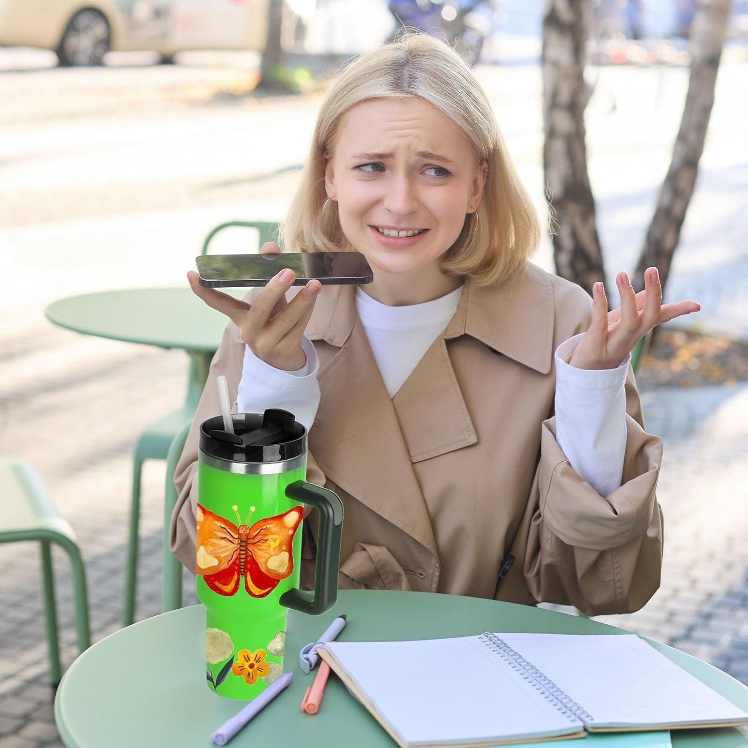 40oz Sublimation Tumbler with Handle&Straw &Lid – Cup holder Friendly Travel Mug-Stainless Steel Neon Tumbler Double Wall Spill Proof Water Bottle – Gifts for Women Men Him Her(green)
