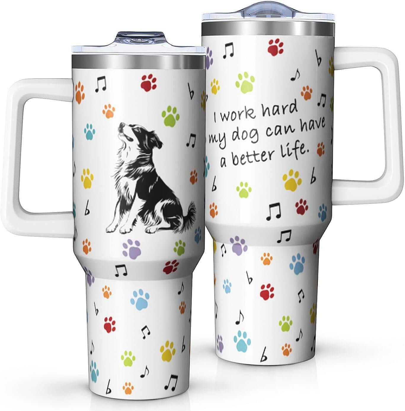 🐶【Capacity Specifications】This travel mug has a novel and interesting design, including a 40-ounce cup with a handle and lid, and 1 straw. The extra-large capacity can hold your favorite beverage, ensuring that you can enjoy it from morning to night, keeping you hydrated all day long.