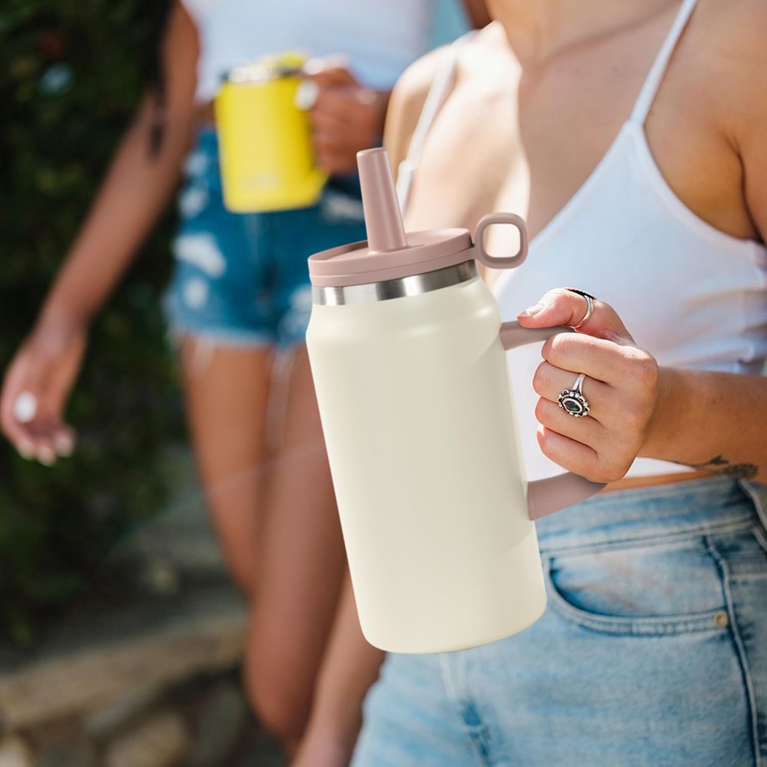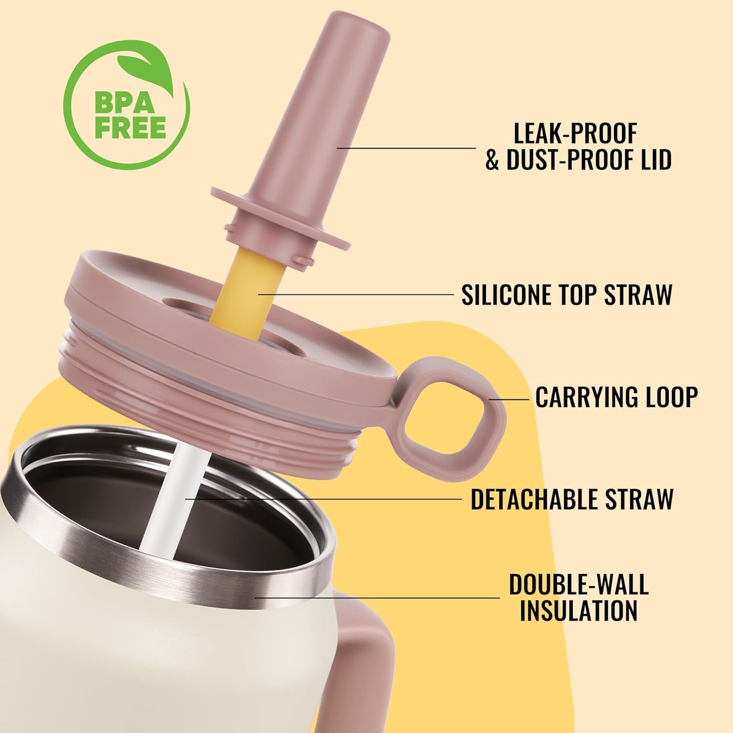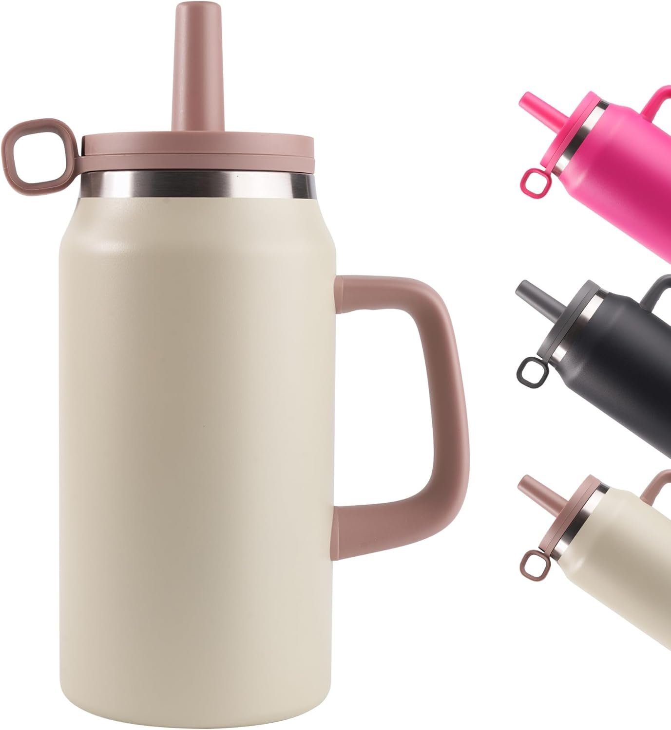 50oz Water Bottle, Leak Proof Tumbler with Lid and Straw, Cover Cap, Stainlees Steel Travel Mug for Hot/Iced Water, Tea or Coffee, BPA-Free, Gifts for Women & Men, Khaki