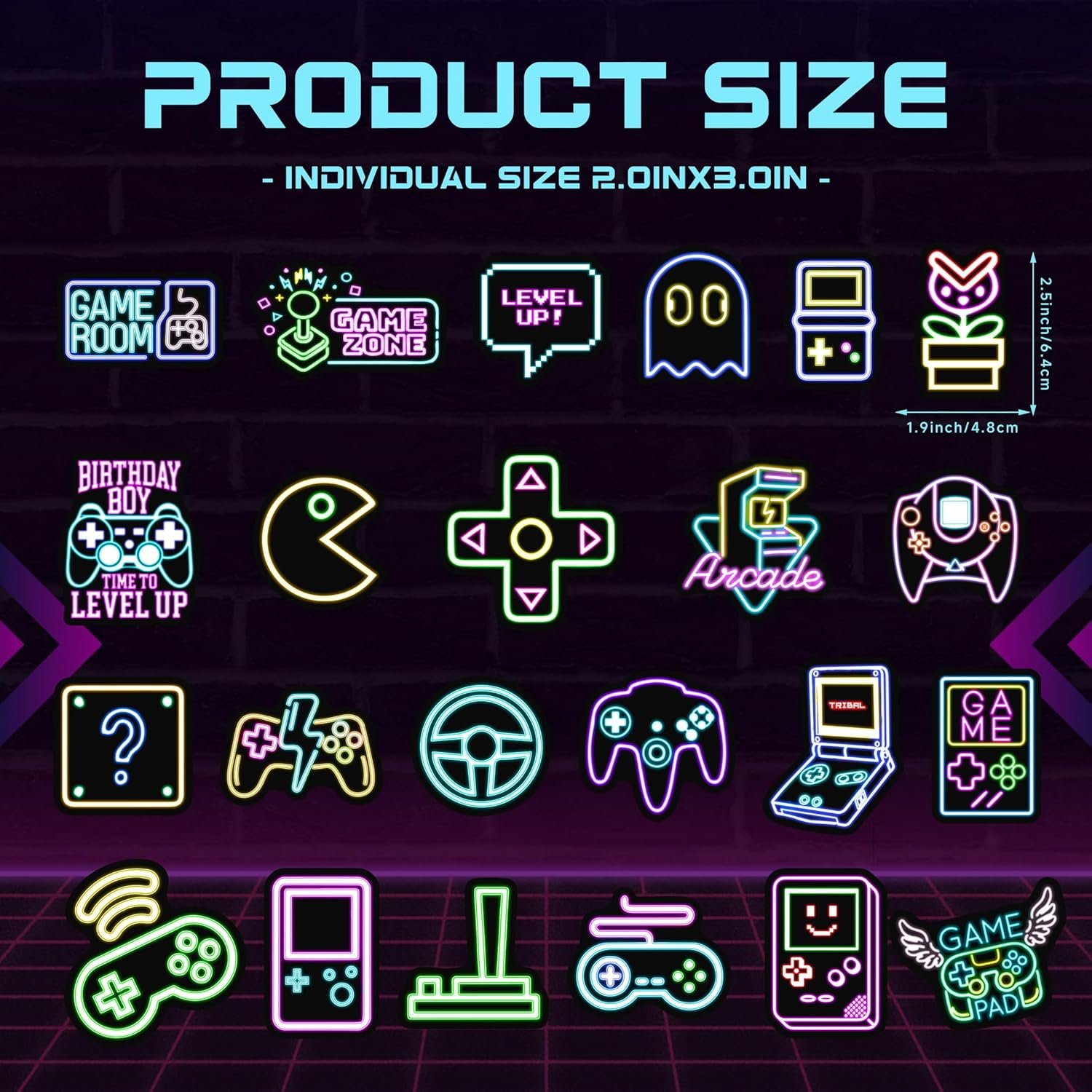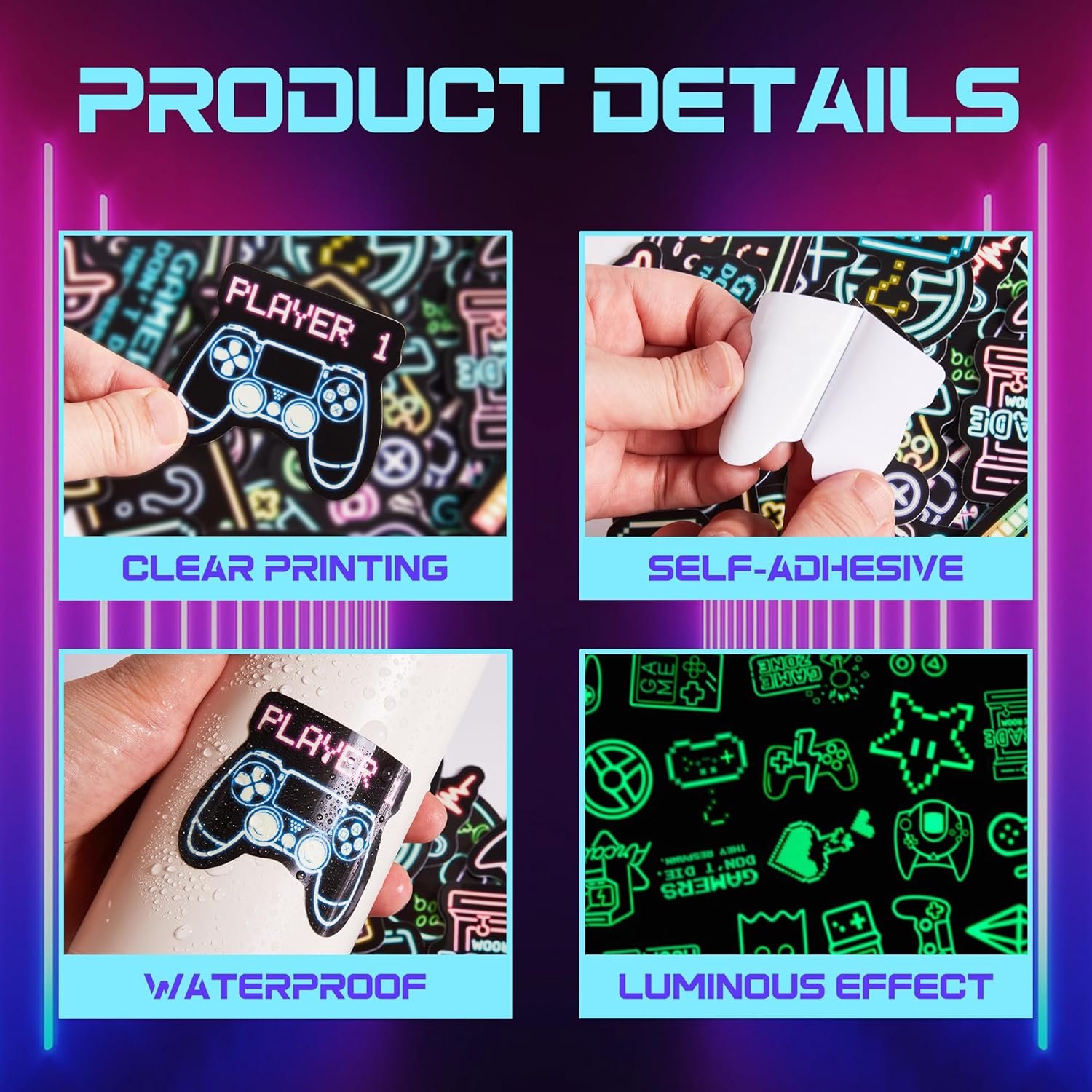 【Glow in the Dark Stickers】52 pcs unique stickers in funny game designs, around 2-3 inch each design.